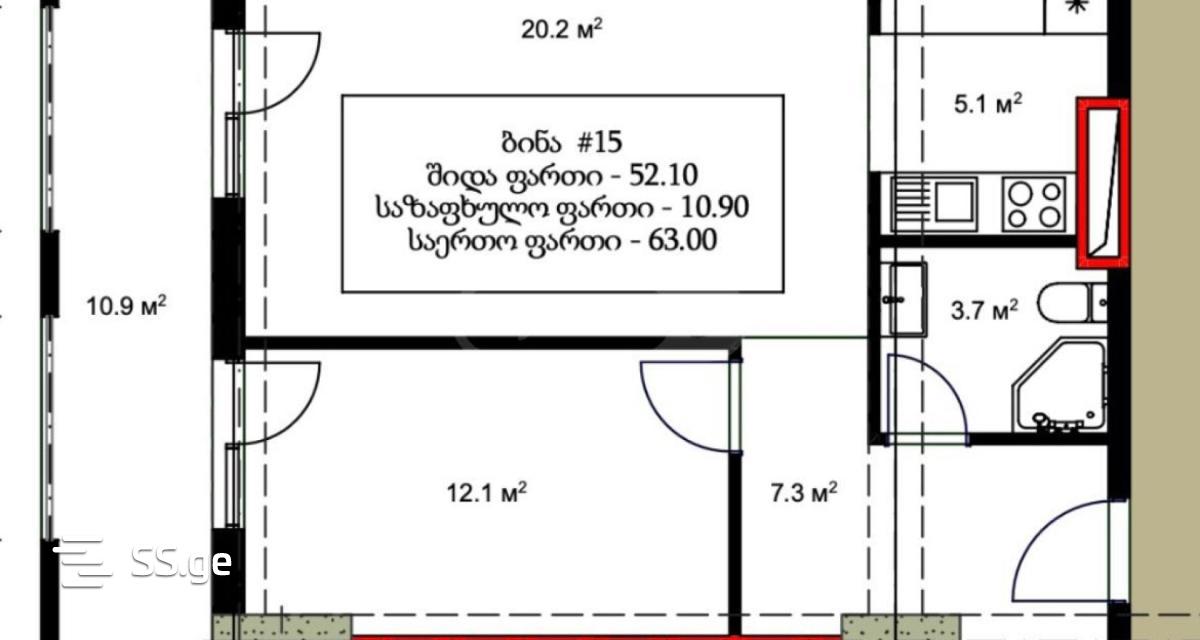63 sq.m apartment for sale, in a newly built complex. Address: Dighom massif, N. Bokhua #3. The living space is 52 sq.m. The balcony is 11 sq.m. The apartment is in white frame condition. If you wish, contact us on this number