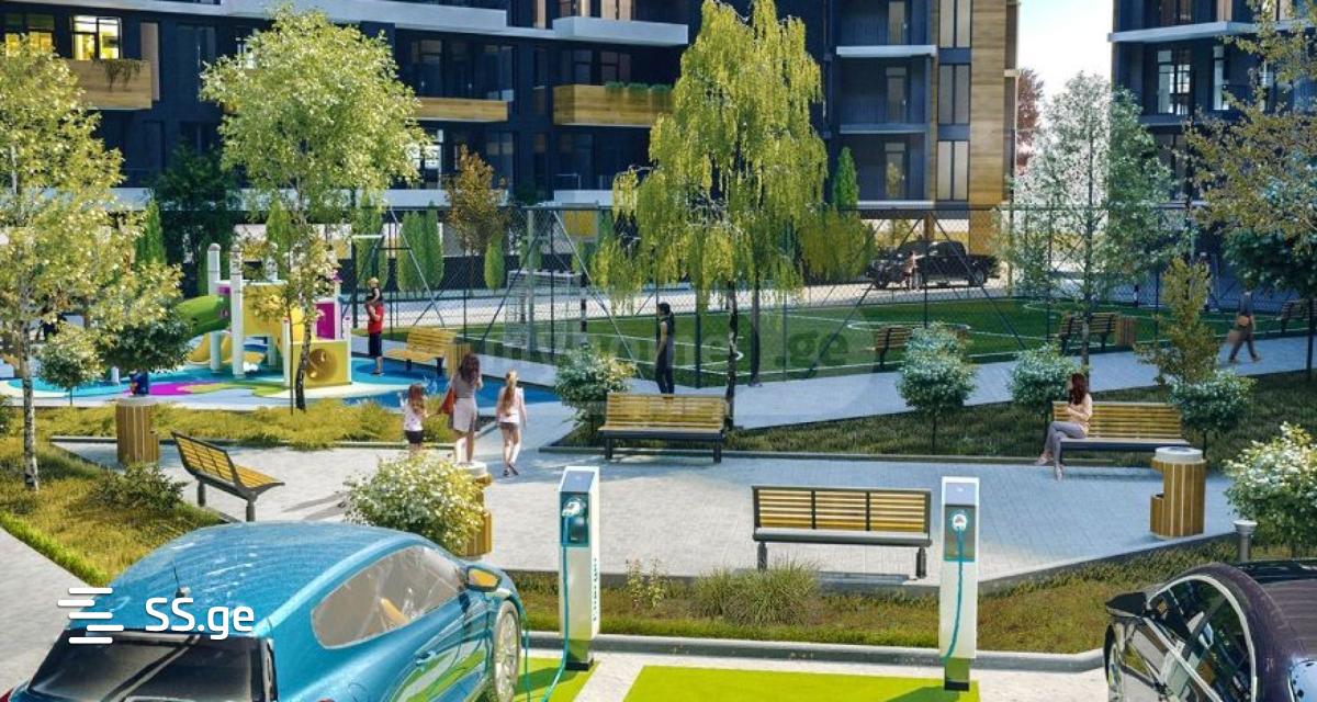 56.5 sq.m. for sale. 2-room apartment in white frame condition, under construction project Dighomi Residence, Nodar Bokhua Street #10, 2nd floor. The project will be completed at the end of 2025. The comfort class residential complex is located between Beliashvili and Ljubljana streets, adjacent to the "New Vision University Clinic".