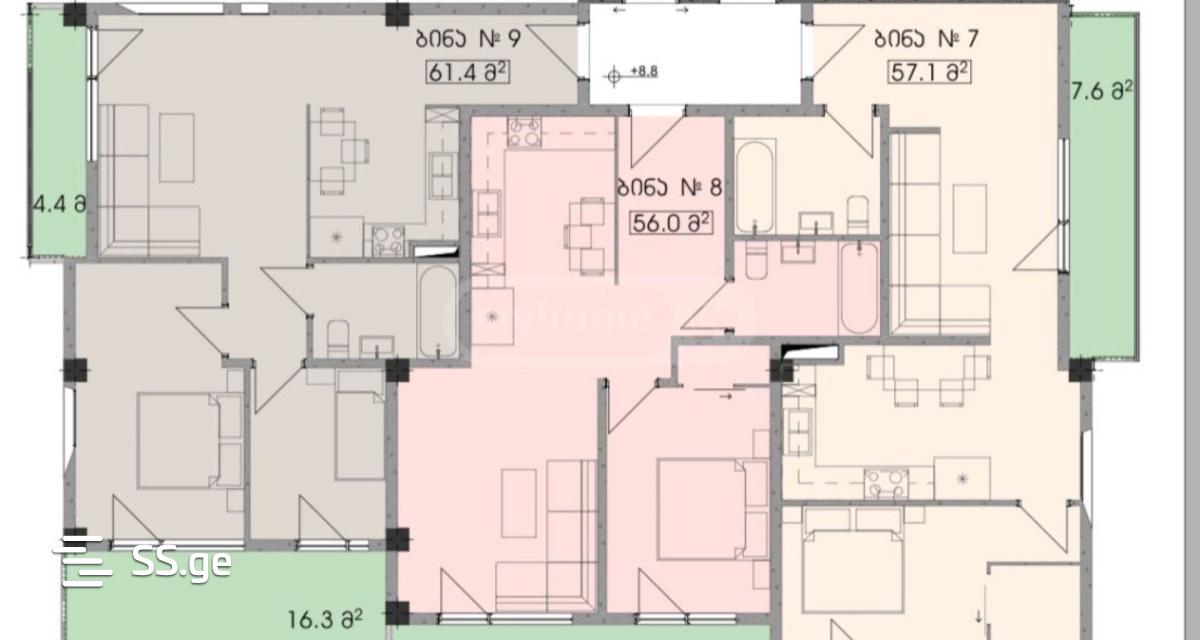 2-room apartment for sale in a newly built building. Construction is complete and interior works are underway. The apartment has a view of old Tbilisi. 700 meters from the Avlabari metro station. Peaceful and quiet place. The apartment is entered in the public register and it is possible to buy it with a bank mortgage (apartment #8, pink