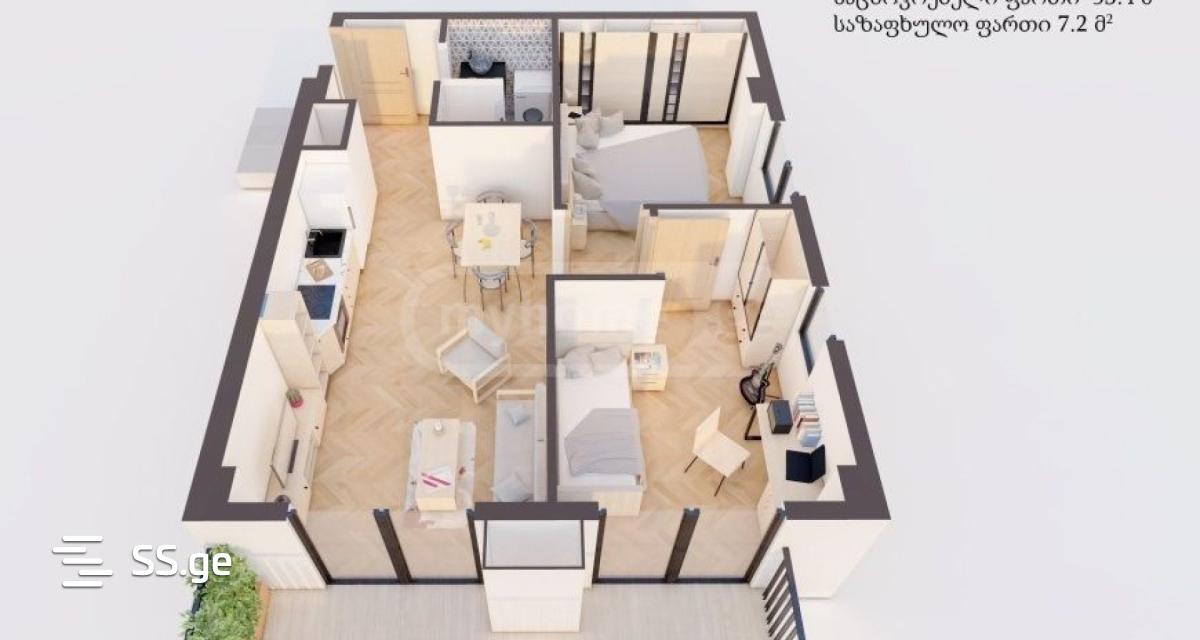 Gldani residential complex is distinguished by a comfortable, cozy location, where you will find: quiet environment, open space, fresh air, beautiful panoramic views. The residential complex is located near the metro station "Akhmeteli Theater" (5 minutes by car, 15 minutes by foot). The residential complex consists of two blocks: A and B. Comfortable apartments are perfectly designed - all rooms have windows and balconies. The project envisages a paved and green yard. Residents have both an above-ground and an underground parking lot at their disposal. Delivery conditions: green frame • plastered walls • stretched floor • metal-plastic window • iron front door • meshed communication points in the apartment • heating pipes • 5 e-mails in the room. Point • The construction of the tiled balcony project has been completed. It is possible to start internal repair works in the apartment