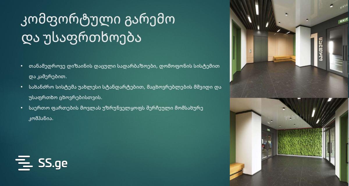 It is the main advantage of the projectConvenient location asFor living and investment:5 minutes from freedom.from metro '300 Aragveli'.10 minutes away.Proximity to various urban areaswith transport.projectdataArea: 2190 sq.m12-storey buildingThe complex includes 76 apartmentsThere are 6 on the XII floorPenthouse with panoramic views3-level parking lot, 61On the car, equippedwith a car lift.2-4 floors - office spacewith independent entrance andwith individual elevator.