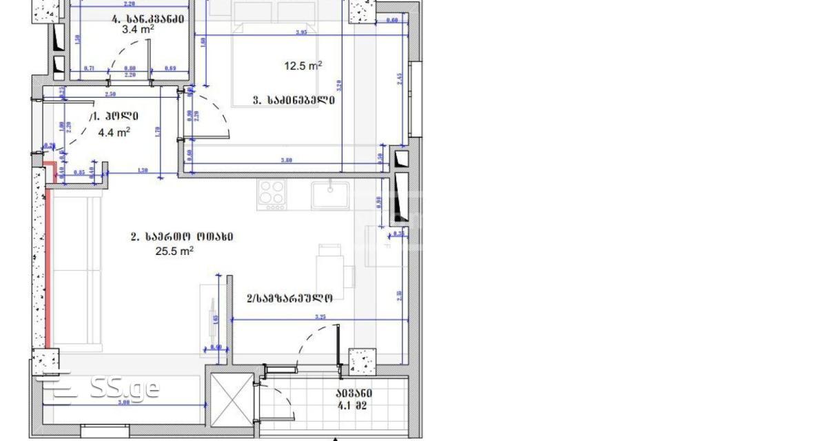 A newly built, completed, registered apartment is for sale, in the M2 project of Chkondideli, in the condition of a white frame. Hot+cold water pipes, heating pipes, electricity. The wiring is done, the balcony is tiled, the total area is 52.6 sq.m. meter, 1st floor, balcony and common room windows on the sunny side