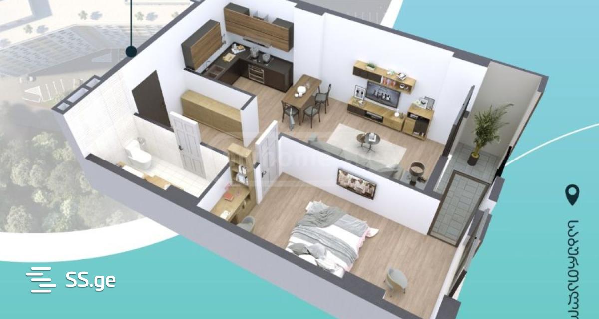 1-bedroom 57 sq.m apartment for sale in the construction company Sfera Building, Nutsubidze II Plateau, Besarion Zhgenti St. 96, 6th floor, Bardeba with white frame in August 2024,