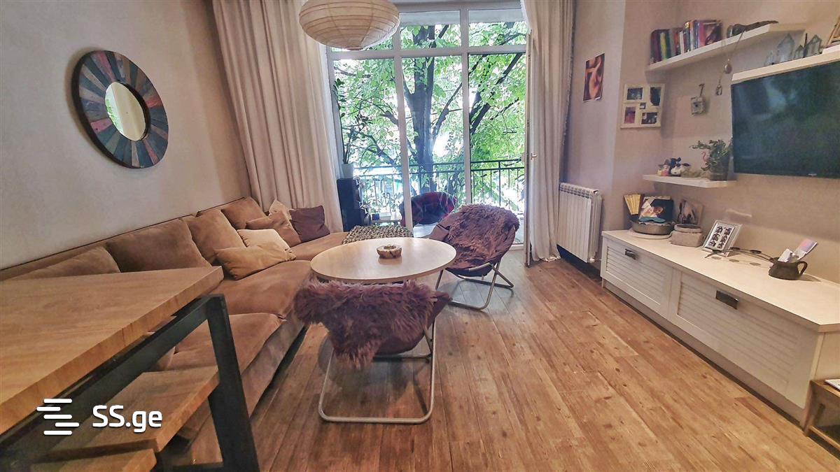 A 2-room apartment with 1 bedroom is for sale, with high-quality renovation, complete furniture and appliances remain.