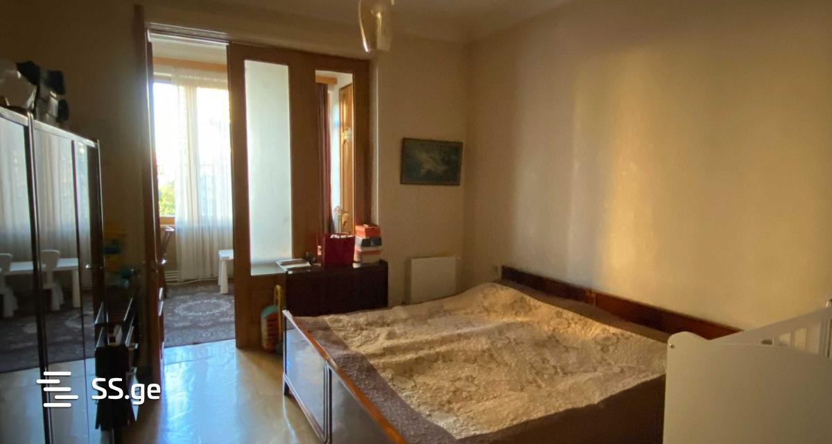 A two-room apartment of a non-standard project is for sale. On Kazbegi Avenue, near Metro Medical University, on the 4th/5th floor (no elevator). The apartment is clean and in very good condition, it has a large loggia and living room (currently used as a bedroom) and a separate kitchen. If desired, it can be converted into a two-bedroom studio apartment. There is oak parquet in the loggia, living room and bedroom, which has only been refinished once. It also has oak doors and windows and is plastered in Mayak. The apartment has a high ceiling (3-3.2 meters). The house has a closed yard, its own square and children's entertainment space.