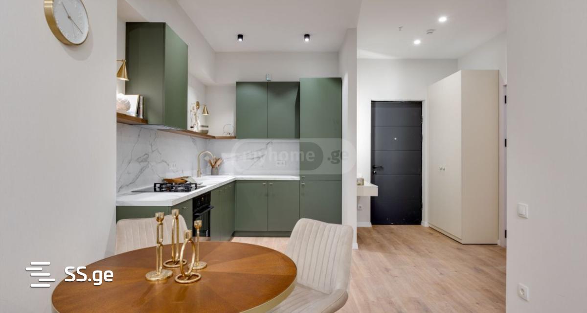 A newly renovated, uninhabited apartment is for sale in Saburtalo, Jikia No. 34, complex 'Arcturi'. The apartment is fully furnished and equipped with appliances (heating boiler, TV, washing machine, built-in refrigerator, dishwasher, oven, hood and gas stove) with a 3-year warranty. The apartment was renovated by the designer of 'Salibu Interiors' company.
