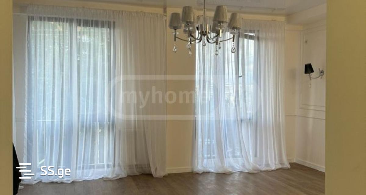 For sale in a newly built building near the Sports Palace on Giorgi Mirotadze Street, 56 square meters, 11/6th floor, 2 rooms, the apartment is under renovation, it will be handed over to the buyer in 2 weeks with this design, central heating, radiators, boiler, chandelier, curtains, built-in kitchen hood and gas stove