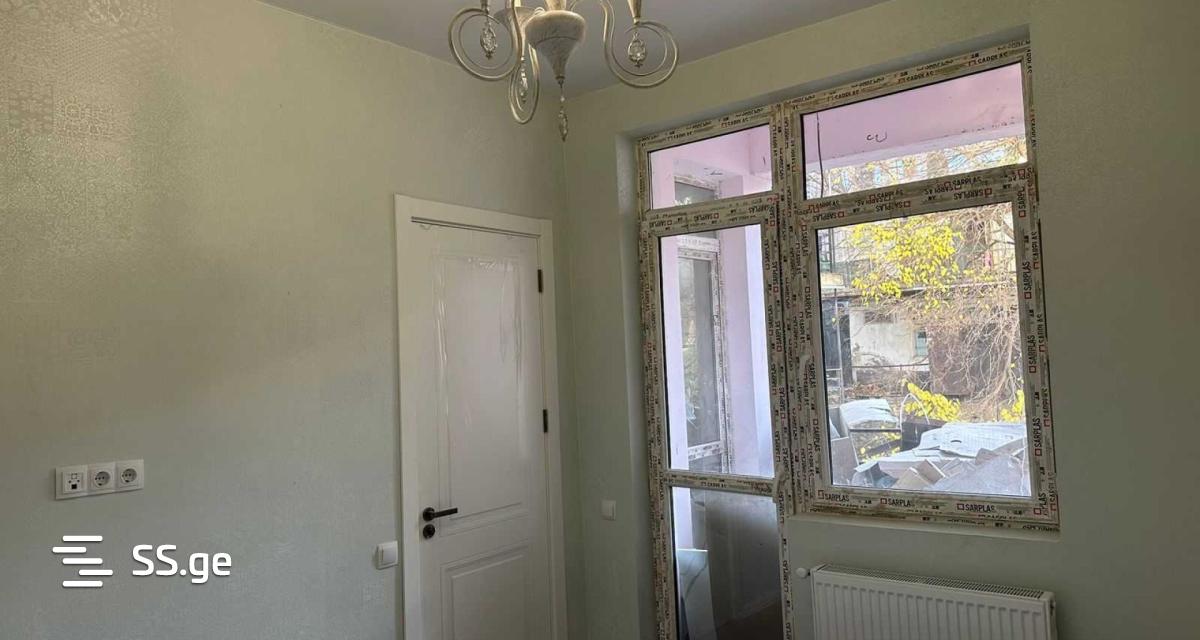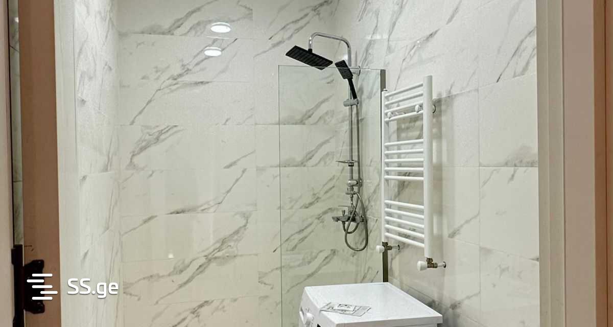 For sale in a newly built residential building on Mikheil Burdzgla Street, a 2-room studio-type apartment with furniture and appliances. The bathroom window curtains are left in the apartment.