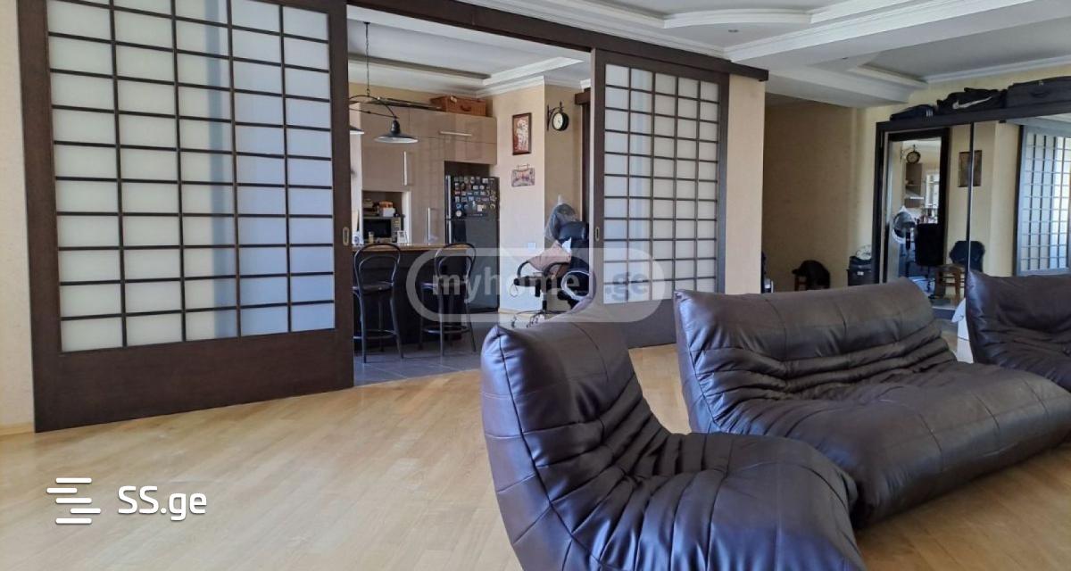for sale in Vake,i. Chavchavadze Ave. 83, in the 'Vake Palace' residential complex, in an ecological and cozy environment, a studio of 100 sq.m. Apartment.The residential area is renovated according to the highest quality European standard:The room is covered with lacquered kopiti parquet made in Germany, and in the kitchen and the entrance there is plain colored ceramogranite made in Spain.The room has a working marble fireplace and powerful air conditioning.Kitchen fittings and massive built-in cabinets are made of Austrian MDF materials.The bathroom and toilet are equipped with an oversized built-in shower cabin with original Villeroy & Boch and Grohe hardware.The room and kitchen overlook the Nutsubidze slope, Lisi settlement and Tskneti highway.• Immediately in front of the building is a large well-furnished yard with children's slides, swings and training simulators.• On the first floor there is a SPAR supermarket and a Khilbostan shop.• Rev. The surrounding area of the complex