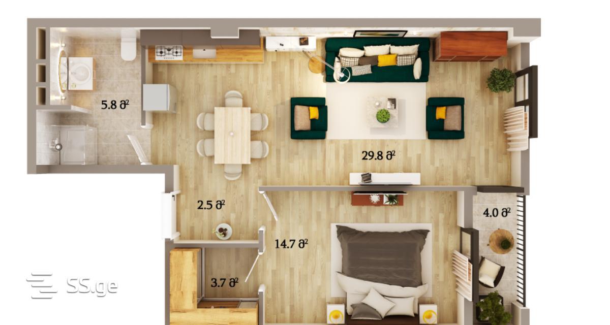A comfortable European-type residential complex is located in an open area, near the Varketili metro station. Modern style, relatively low-rise, compact buildings create a cozy, quiet living space. An additional advantage of the "Sunny City" area is the well-equipped infrastructure and well-organized common spaces. The complex is served by underground and surface parking lots. Delivery conditions: white frame • internal partitions • plastered walls (except for bathrooms) • stretch floor • metal-plastic doors and windows • iron entrance door • central stand • tiled balcony