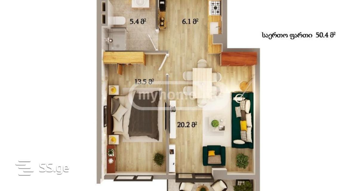A comfortable European-type residential complex is located in an open area, near the Varketili metro station. Modern style, relatively low-rise, compact buildings create a cozy, quiet living space. An additional advantage of the "Sunny City" area is the well-equipped infrastructure and well-organized common spaces. The complex is served by underground and surface parking lots. Handover conditions: white frame • internal partitions • plastered walls (except bathrooms) • stretch floor • metal-plastic window • iron entrance door • central stand • tiled balcony