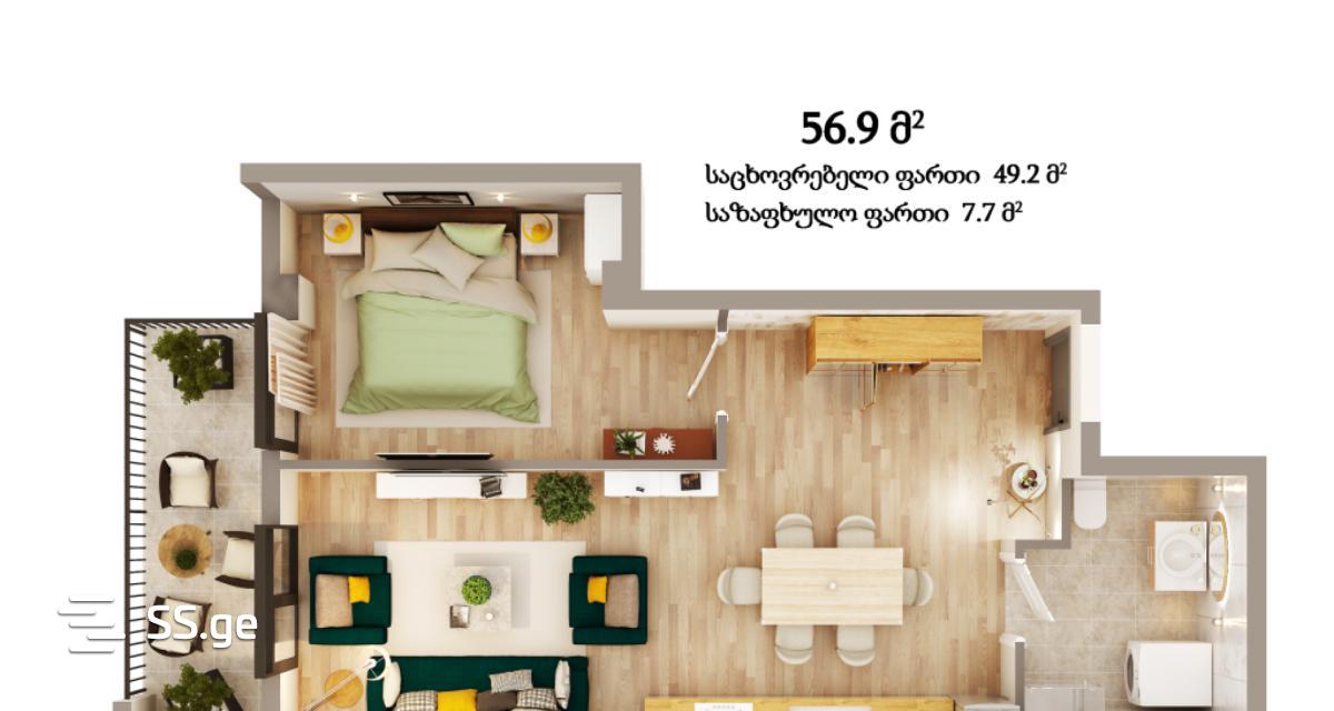 "Sunny City", a comfortable European-type residential complex, is located in an open area, near the "Varketili" metro station. Modern style, relatively low-rise, compact buildings create a cozy, quiet living space. An additional advantage of the "Sunny City" area is the well-equipped infrastructure and well-organized common spaces. The complex is served by underground and surface parking lots. Delivery conditions: white frame • internal partitions • plastered walls (except bathrooms) • stretch floor • metal-plastic doors and windows • iron entrance door • central stand • tiled balcony