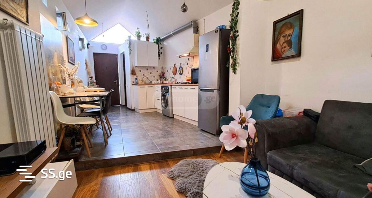 სასწრაფოდ იყიდება სტუდიოს ტიპის კერძო სახლი. პატარა ეზოთი, საპარკინგე ადგილით. სახლს აქვს 8 კვადრატული საკუთარი ეზო, დამატებით 10 კვადრატი სარდაფი და სხვენი რომელიც გამოდგება ნივთების შესანახად. სახლი არის მაღალჭერიანი მანსარდული გადახურვით, ნათელი ოთახები. გამოდგება როგორც საცხოვრებლად ასევე სამხატვრო სახელოსნოდ და სტუდიად. გასაქირავებელად არის ძალიან პერსპექტიული. ბინაში რჩება მხოლოდ ჩაშენებული ავეჯი და ტექნიკა. სახლში არის ცენტრალური გათბობა და ყველა კომუნიკაცია