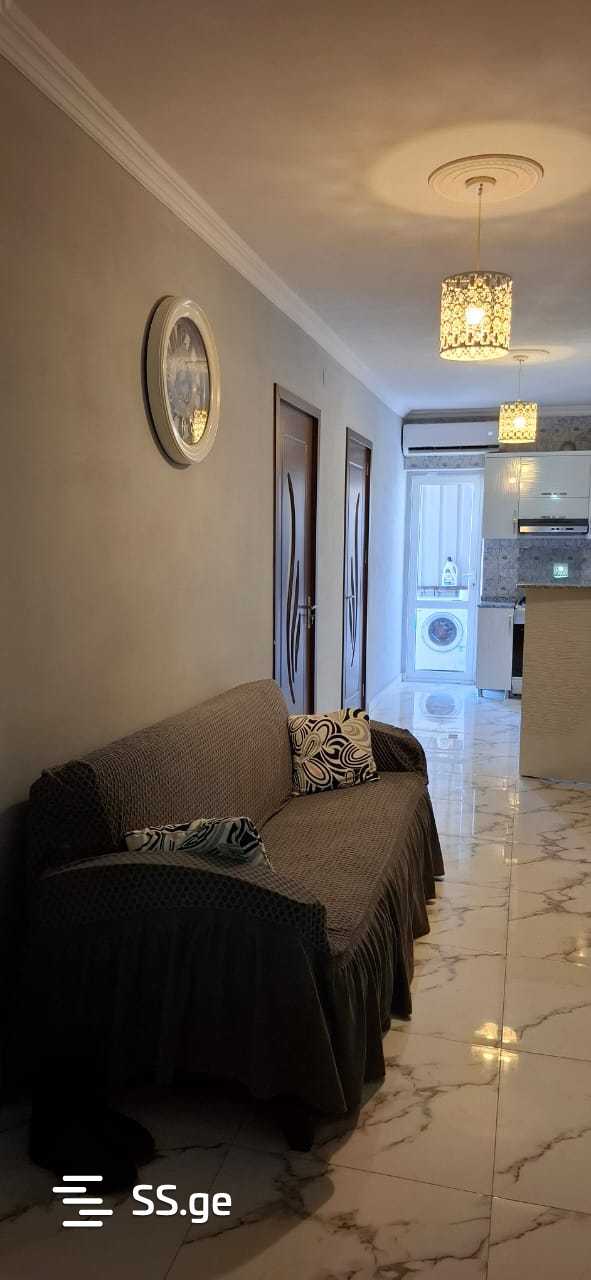 For rent in Batumi on Agmashenebeli Street, 100 sq. m, three-room with two bedrooms, separate isolated living room, separate kitchen. Renovated with furniture and appliances, with natural gas, balcony. With carpet. Price: 1000 GEL