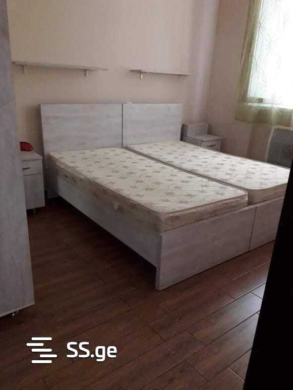 For rent: a 3-room renovated apartment with 2 bedrooms in Bagebi. The apartment is furnished with household furniture, appliances (washing machine, gas stove, refrigerator, central heating), and other necessary inventory. The apartment is located in an ecologically clean area, close to bus stops.