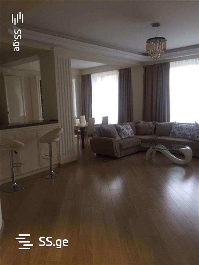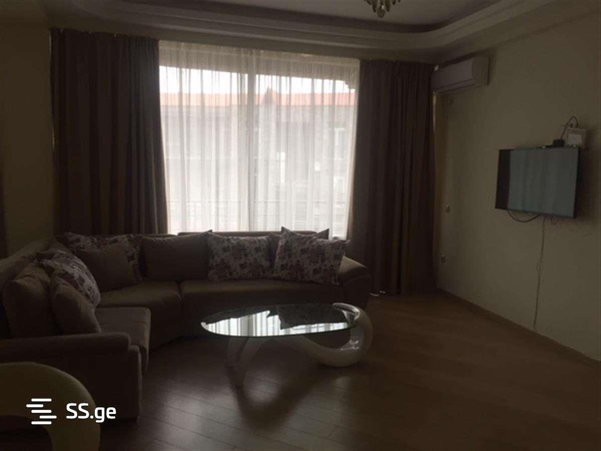 The apartment is located in Kaklebi, in the elite complex of Villa Vake, in an ecologically clean environment. The total area of the apartment is 130 sq.m., with two bedrooms, two bathrooms, newly renovated, well-furnished furniture and appliances. The apartment has its own small yard in front. The area of the complex is fenced, has a large yard with a children s playground and a stadium. With 2 months advance payment