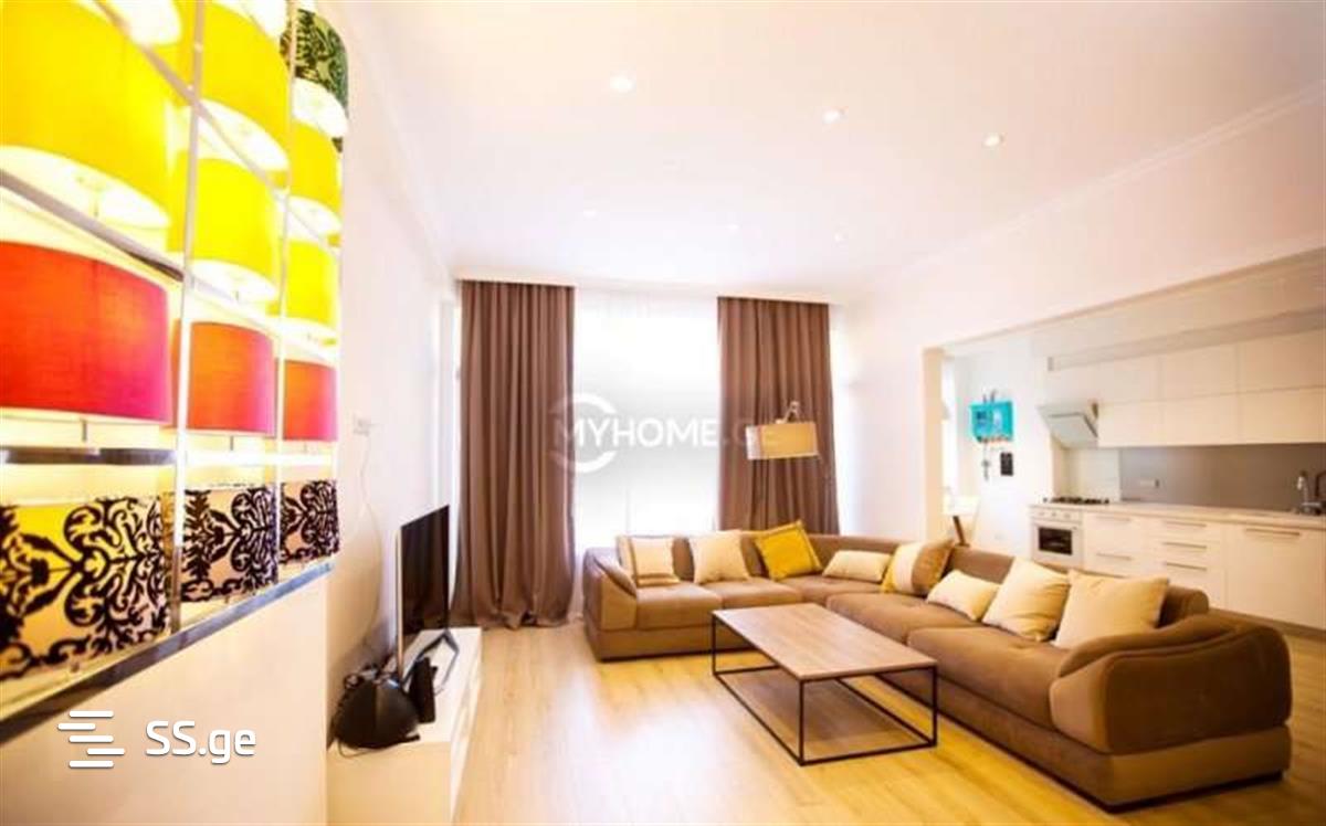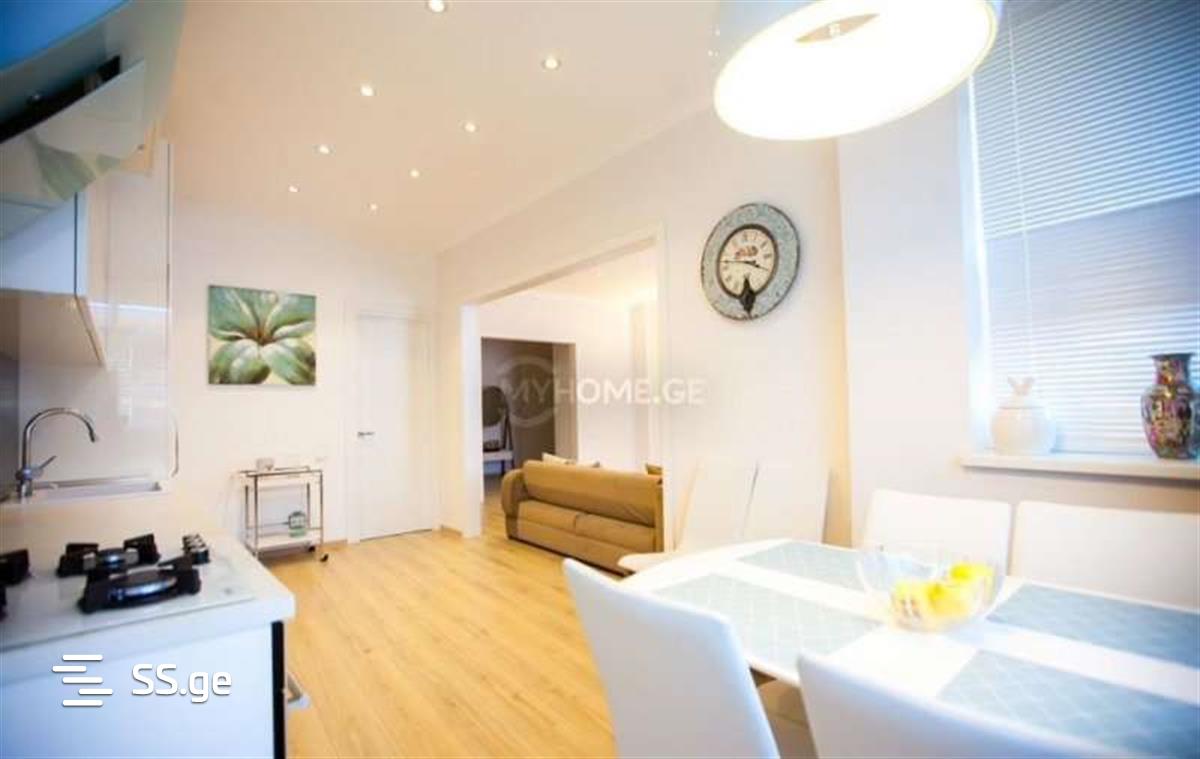 3-room 1 (3) apartment for rent in Kaklebi, in Villa Vake elite complex, in ecologically clean environment, newly renovated, total area 110 sq.m. 1 living room, 2 bedrooms, 1 kitchen-dining room, 2 bathrooms, 1 balcony, with furnished furniture and appliances. In front of its own small yard. The area of the complex is fenced. Has a large yard with a children s playground and a stadium. With its own garage.