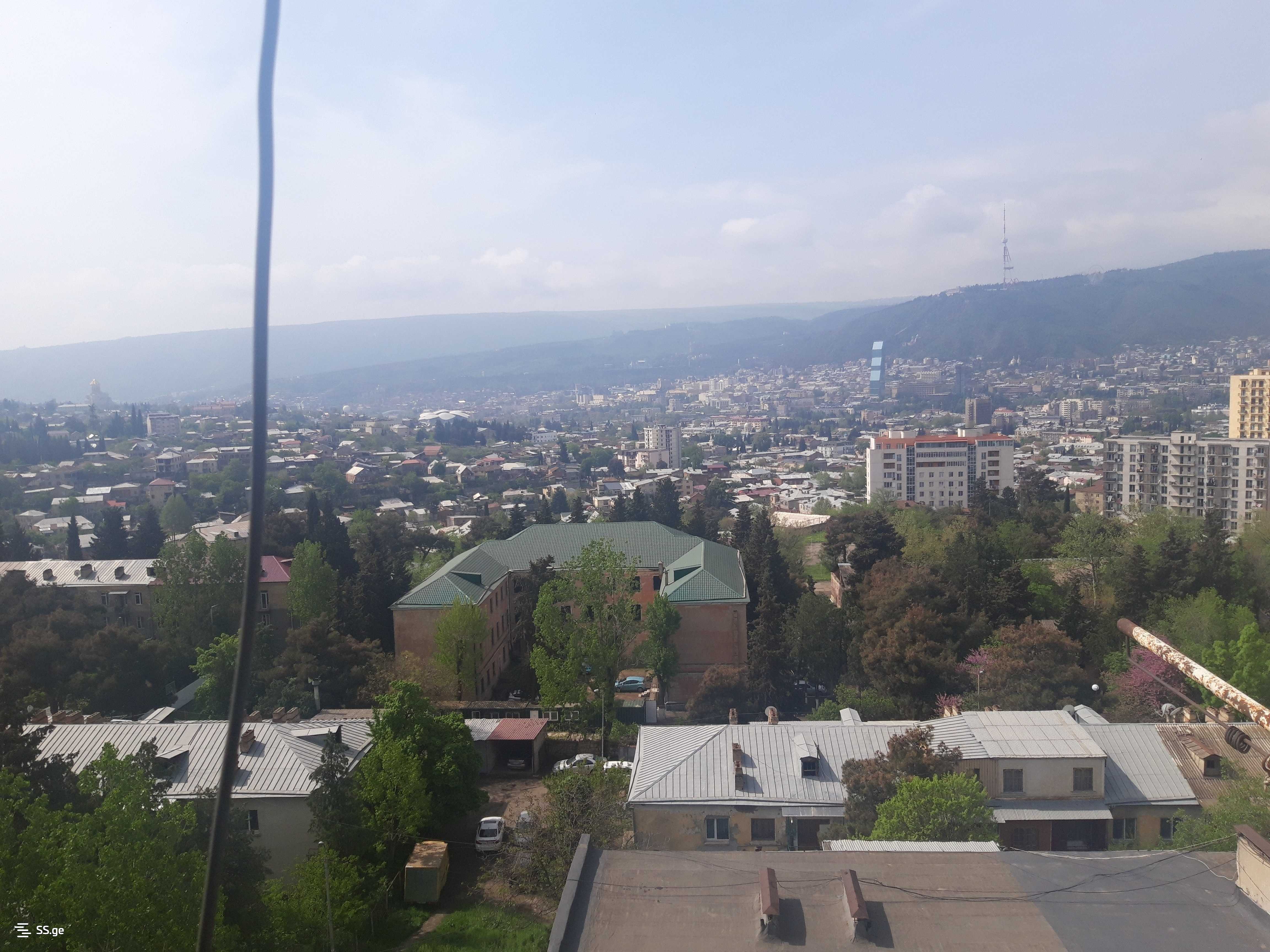 The apartment is 2 rooms with a loggia, equipped with all necessary appliances, dishes, and furniture, with a view of the whole of Tbilisi. It is close to Station Square, the 'Karvasla' shopping center, and 'Carrefour'.