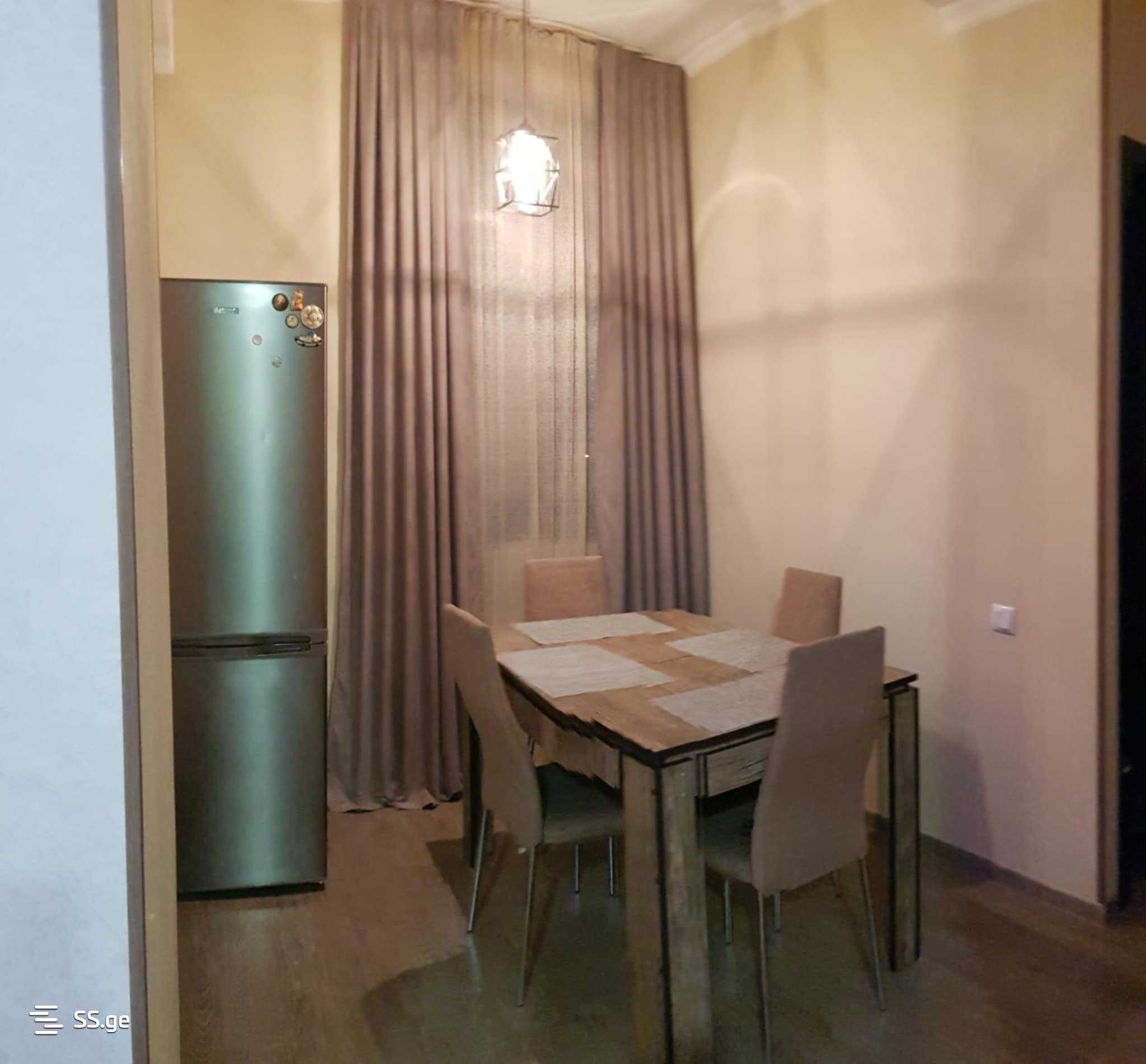 A studio-type apartment is for rent in Didgomi, near Goodwill, in a newly built building with 2 bedrooms. With insulated iron bars. With all necessary appliances and furniture.