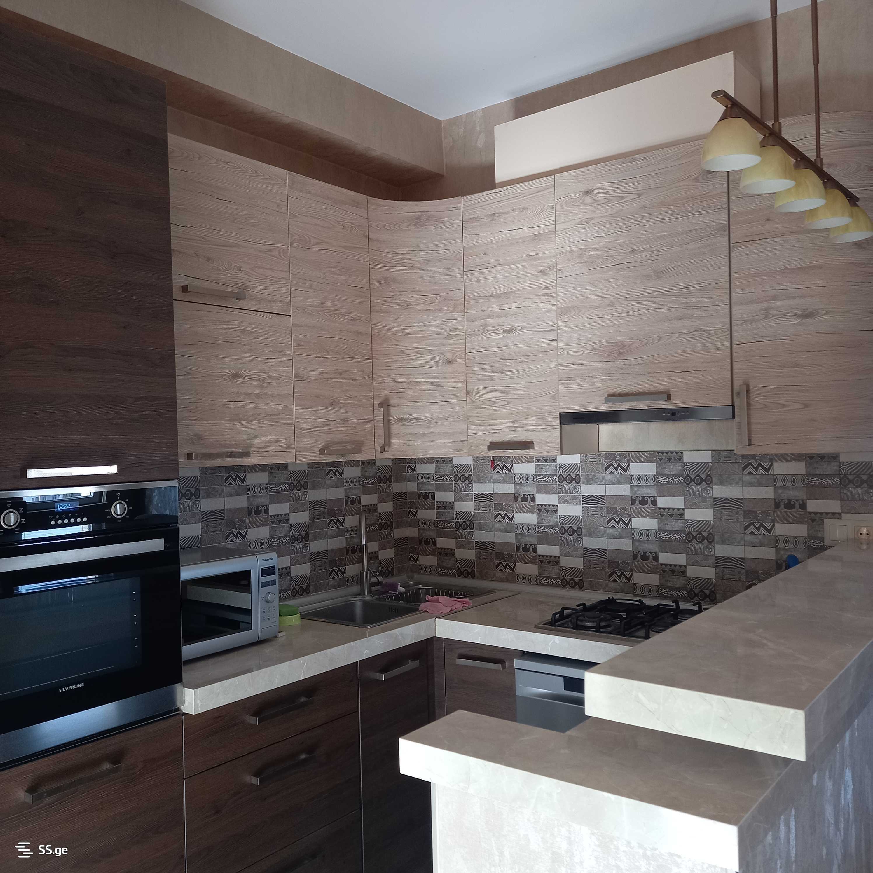 For rent, a 90 m² newly renovated bright corner apartment near the Tsvereteli metro, with 2 bedrooms and 2 bathrooms, and 2 balconies. Furnished with all kinds of furniture and appliances. With a preliminary and final payment.