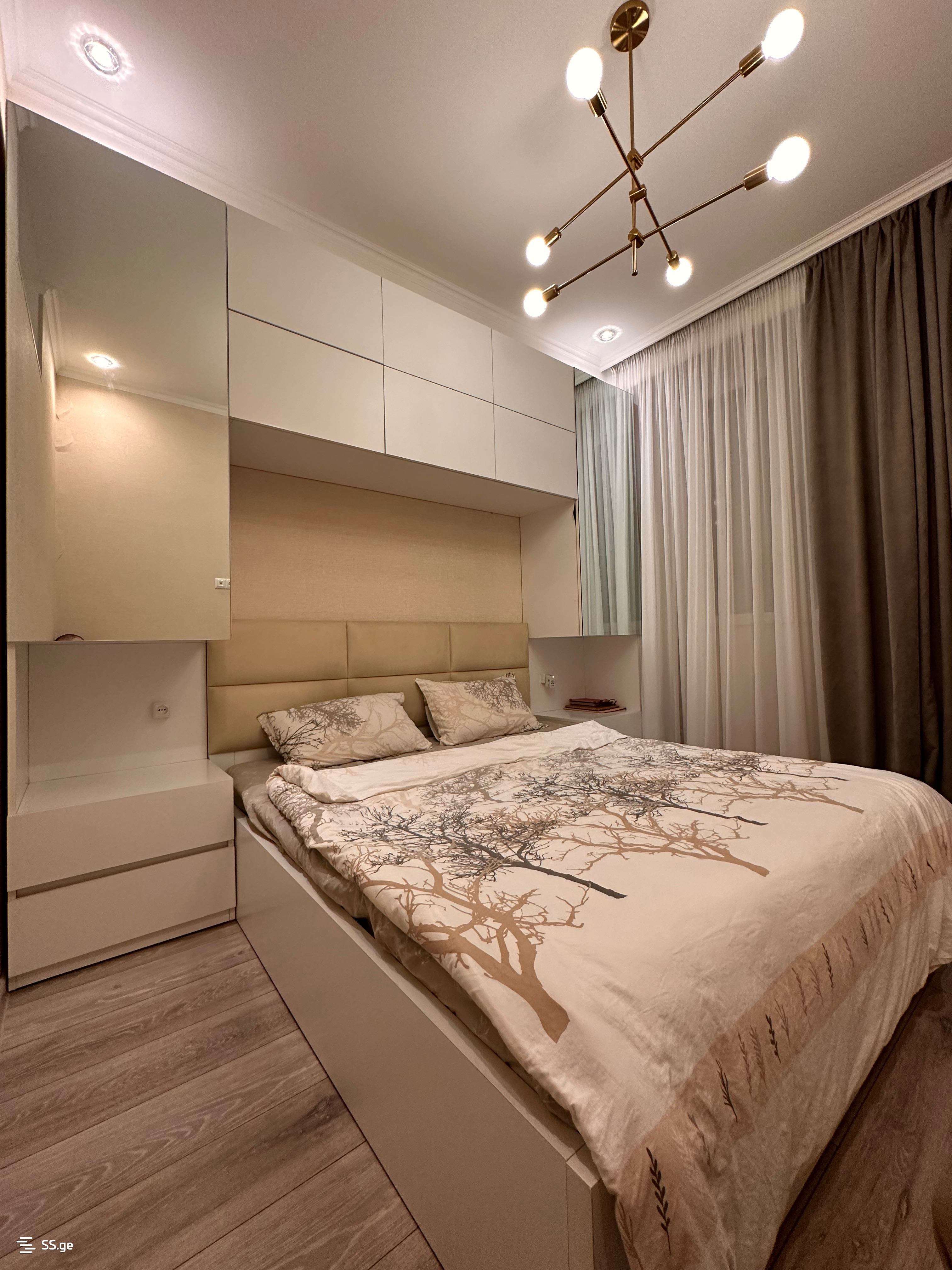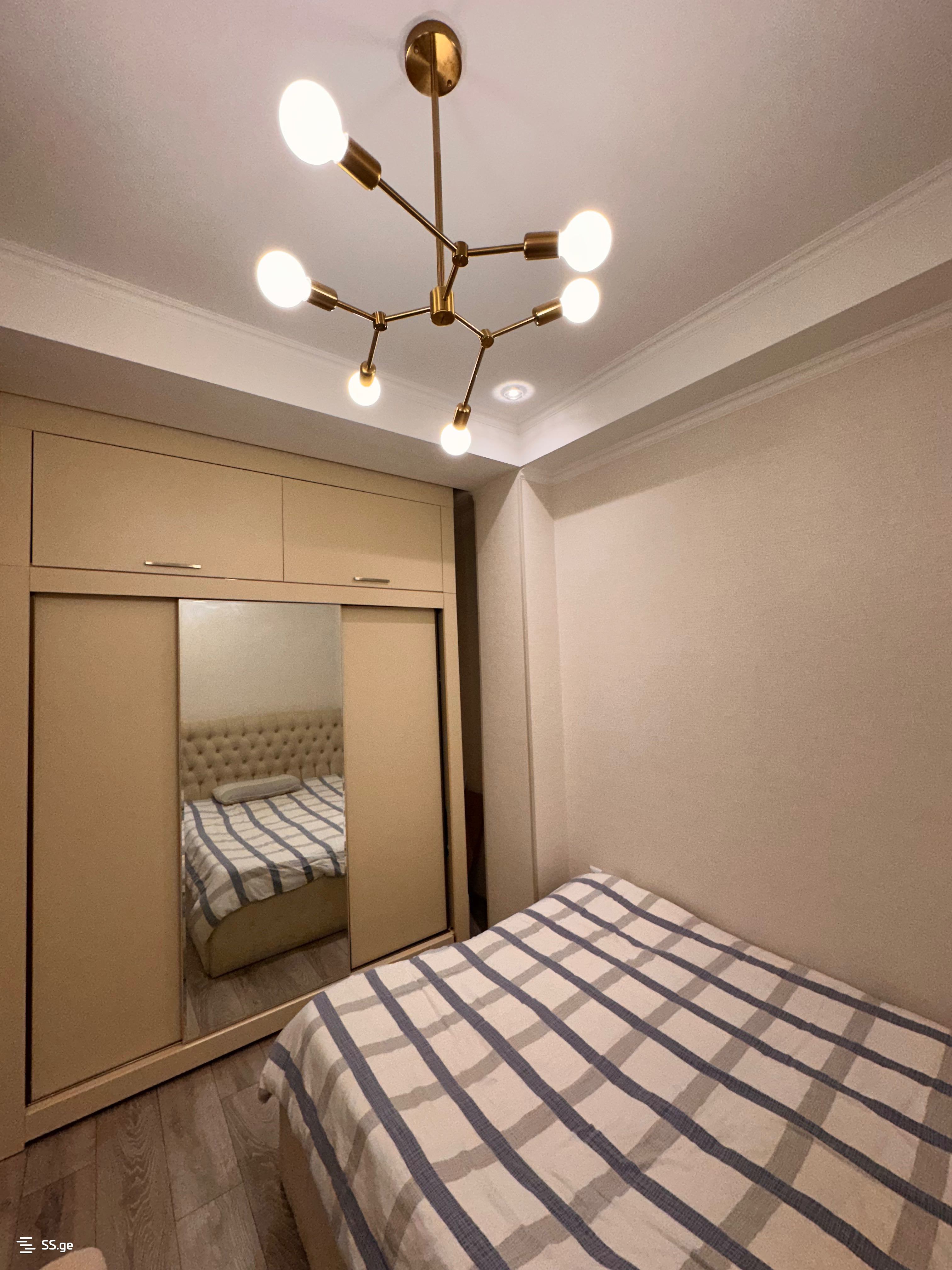 An apartment with the highest quality furniture and appliances is for rent in a newly built building. The building is secured with a security system. There are shops and pharmacies nearby. A furniture house and others. Near the bus stop. Prepayment for the first and last month.