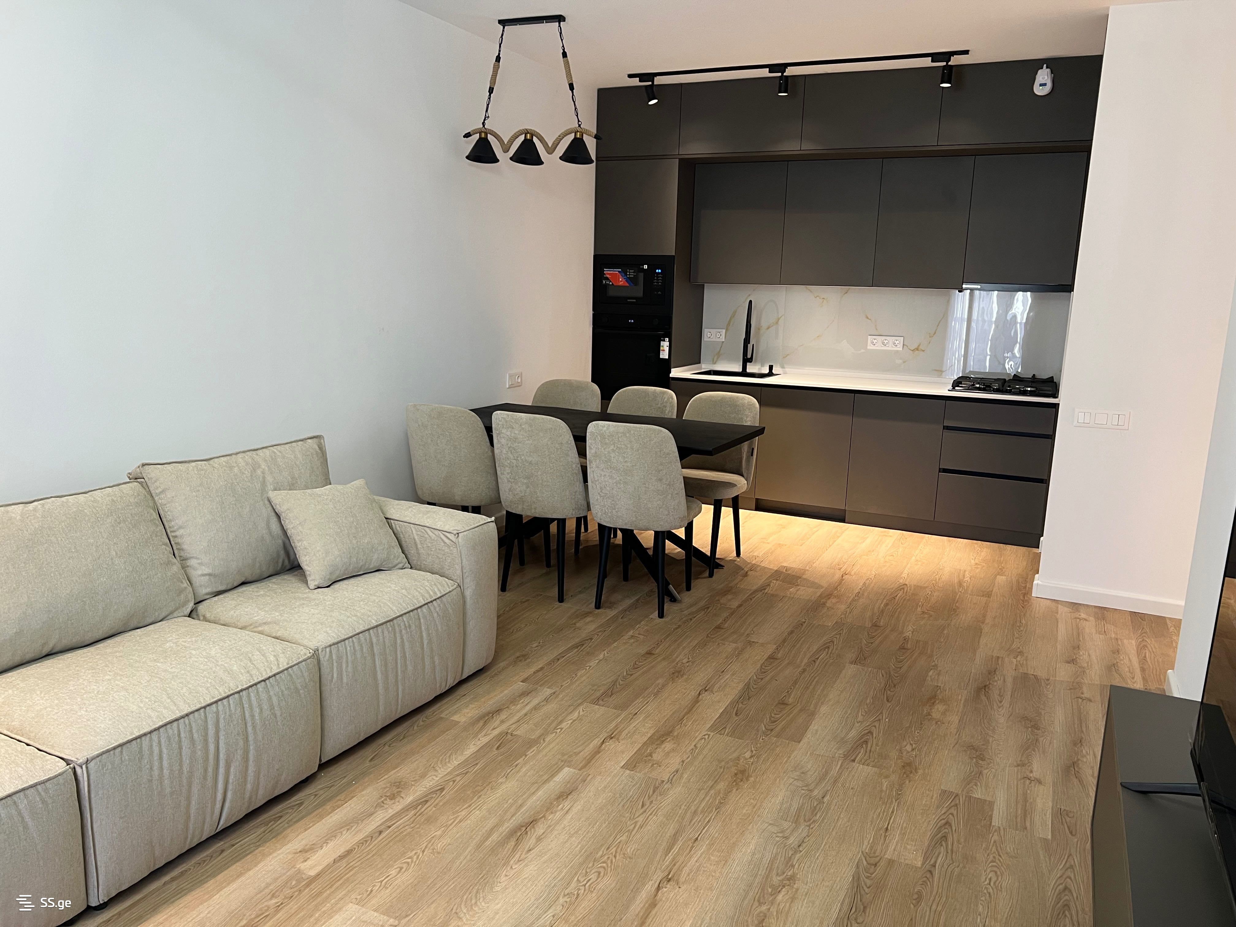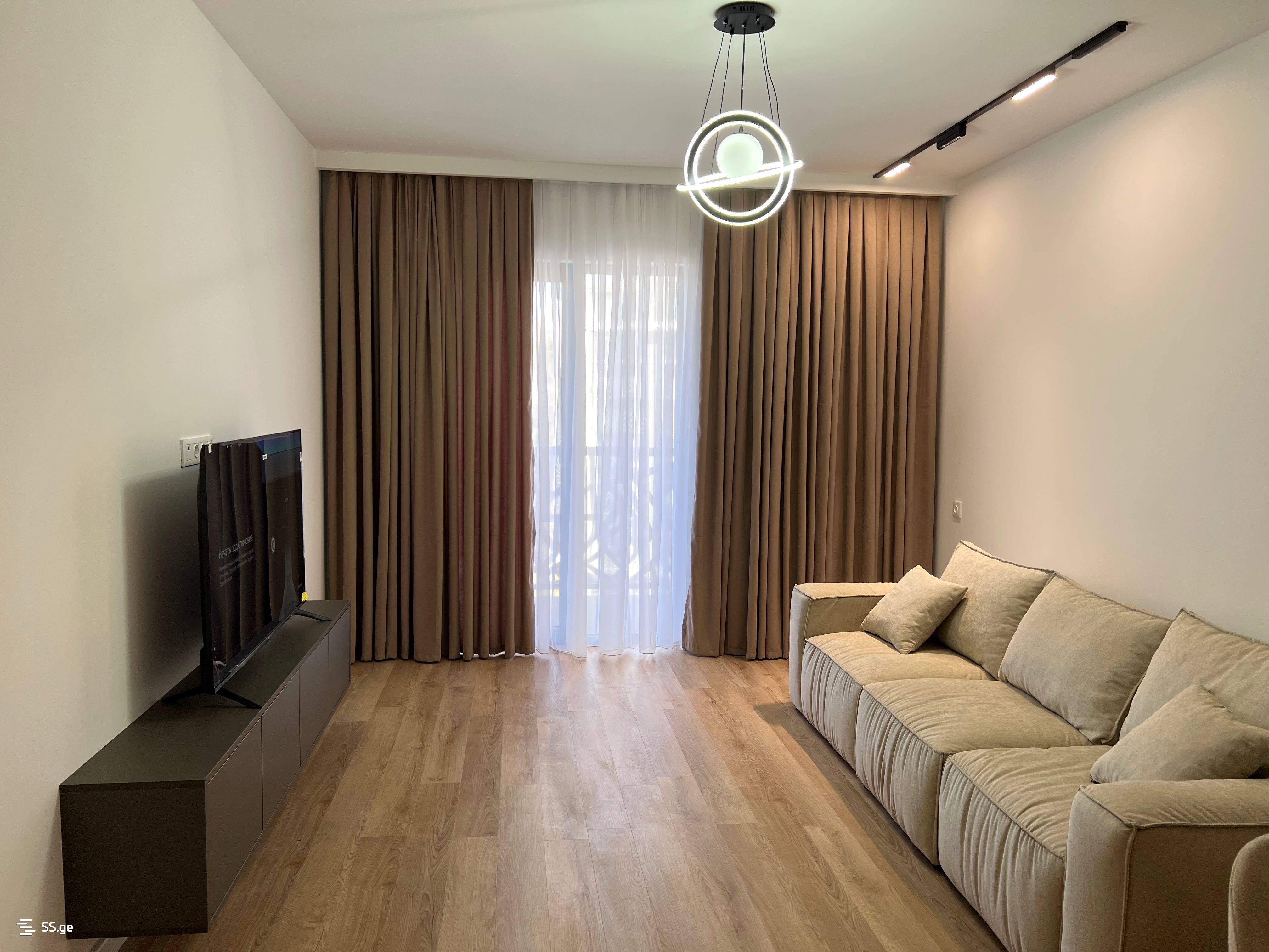 An apartment is for rent in a new residential area of m², "m³ Saburtalo" located in the central part of Tbilisi, on a plot of land situated between Marshal Gelovani Avenue and Bakradze Street. The apartment comes with all necessary inventory, which is completely new and unused. It is equipped with a dishwasher, a washing machine for clothes, an oven / microwave, a TV, etc. The renovation works in the apartment have recently been completed and it is entirely unoccupied (it is being rented out for the first time). Both bedrooms and the living room have separate exits to the balcony. If desired, I can send you additional photos.