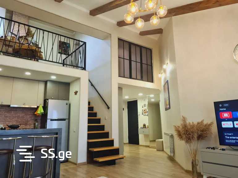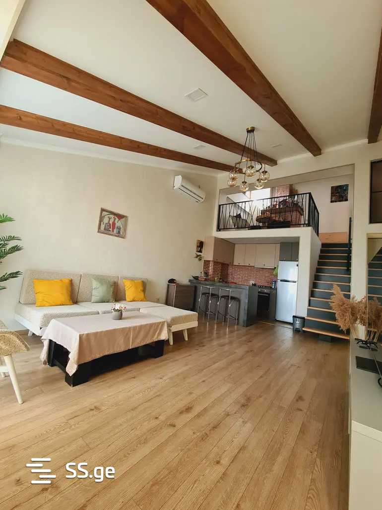 Why should you buy or rent this apartment today? Loft-style design that screams elegance and success. Two floors, which means more space, more opportunities. Open layout is ideal for both families and Airbnb rentals. Rooms saturated with natural light, high ceilings, and wooden beams — a symbol of prestige. The furnished kitchen is ready for you to sit down and make money. Two isolated bedrooms + additional space (office or kids' room). New renovation, with modern furniture and appliances, you won’t need to buy anything.