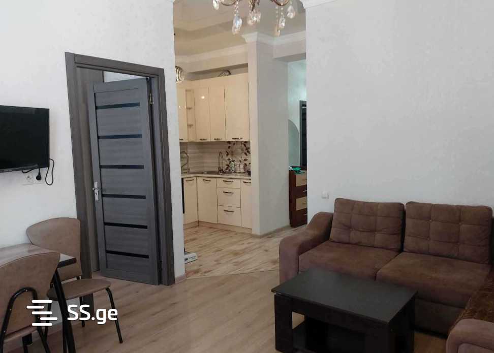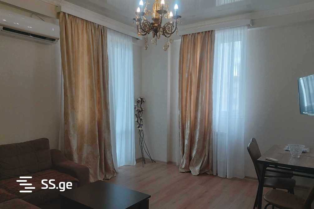 A 3-room studio-type apartment is for rent on Mindeli Street in Saburtalo, furnished with furniture and appliances, it is bright and cozy. Designed for 4-5 people.