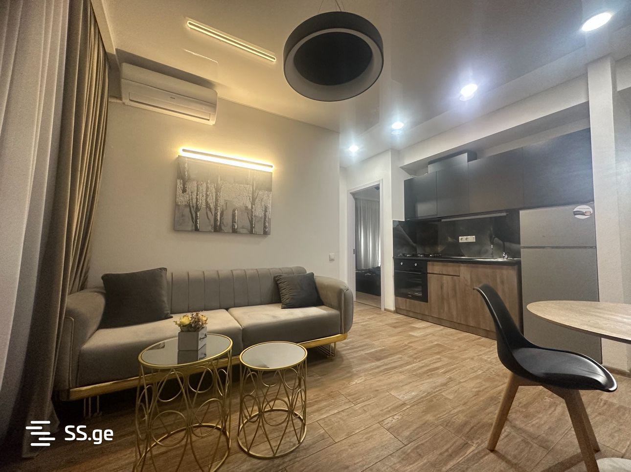 For rent in Saburtalo on Mindeli Street in the Arch building, newly renovated three-room apartment of 75 square meters with two bedrooms. Furnished and equipped with appliances. Central heating, internet. Price $600.
