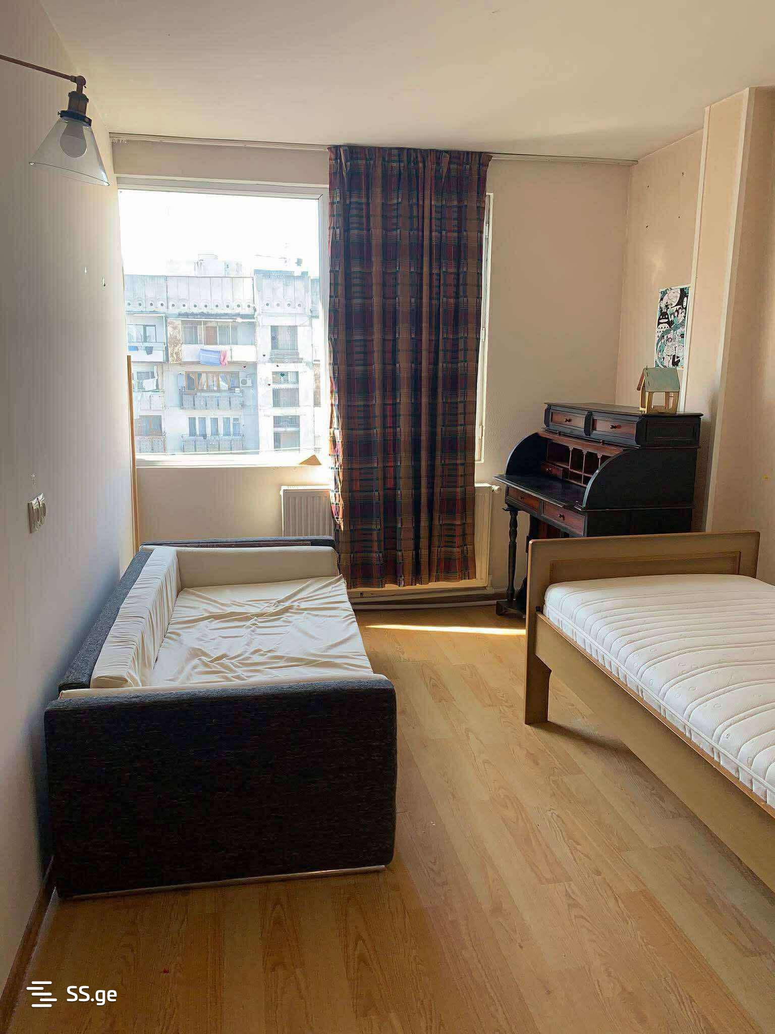 For rent in Saburtalo near the metro station University, a three-room apartment with two bedrooms is available. The location is excellent with central heating. The price is 1300 Lari, with payment for two months.