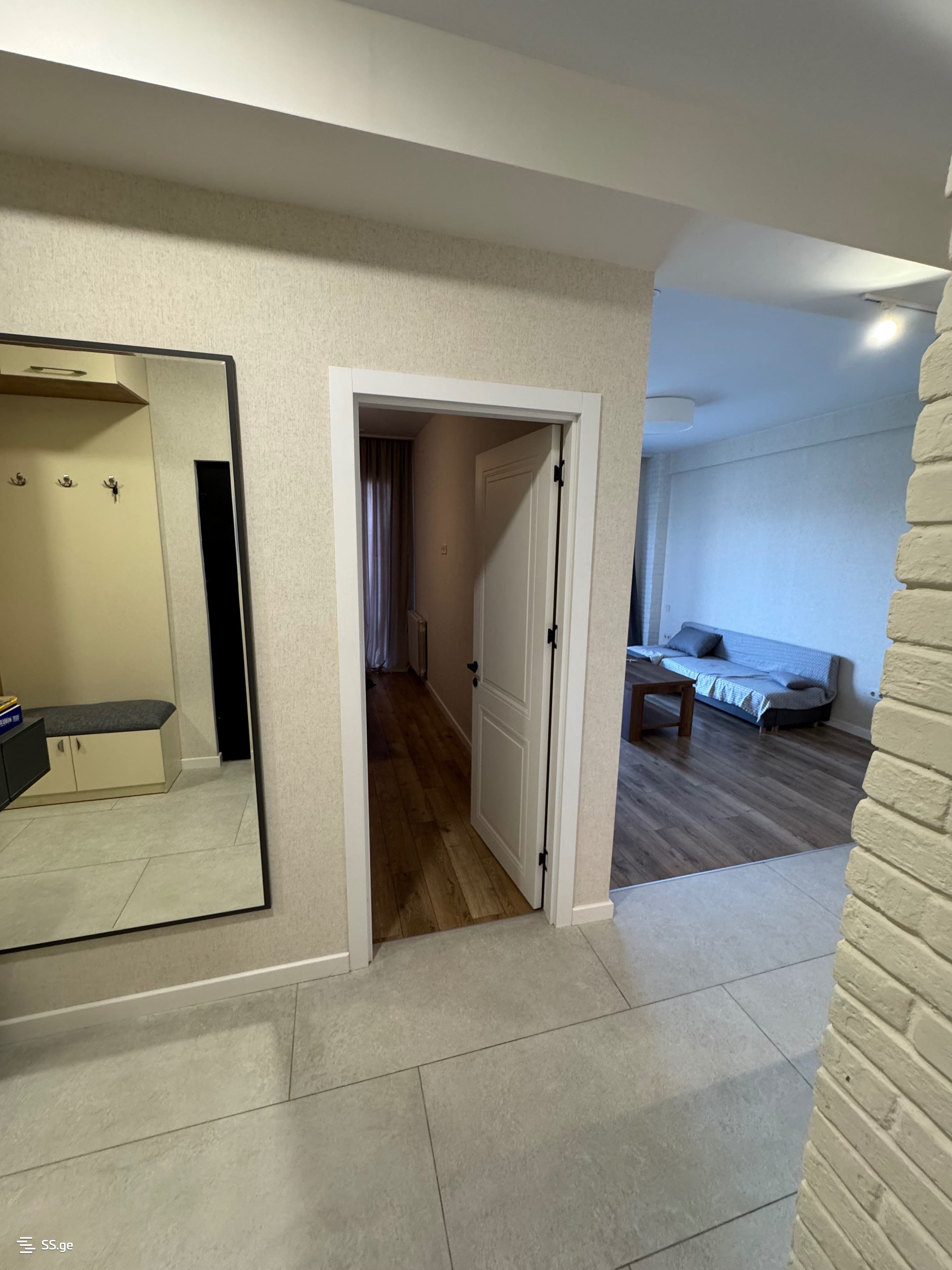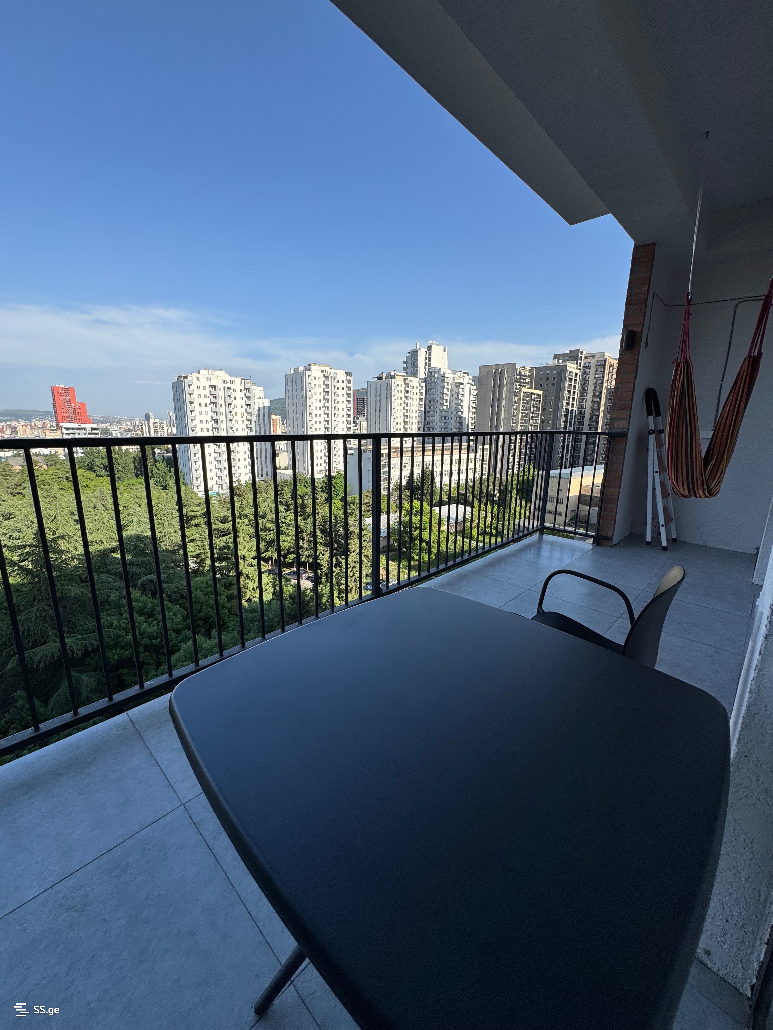 For rent is a newly renovated, unoccupied apartment on Mindeli Street, in the Green Life residential complex, in a quiet, calm, and cozy location. The apartment is 82 sq/m, newly renovated, furnished, equipped with built-in appliances, central heating, 2 air conditioners, 2 bedrooms, a large balcony, good view, and aluminum doors and windows. The price is $800.