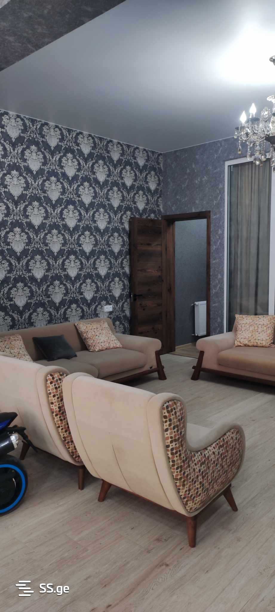 For rent, an 80 square meter unfurnished apartment with 2 bedrooms, a 40 square meter living studio with a large entrance, newly renovated. Price is 1100 lari.