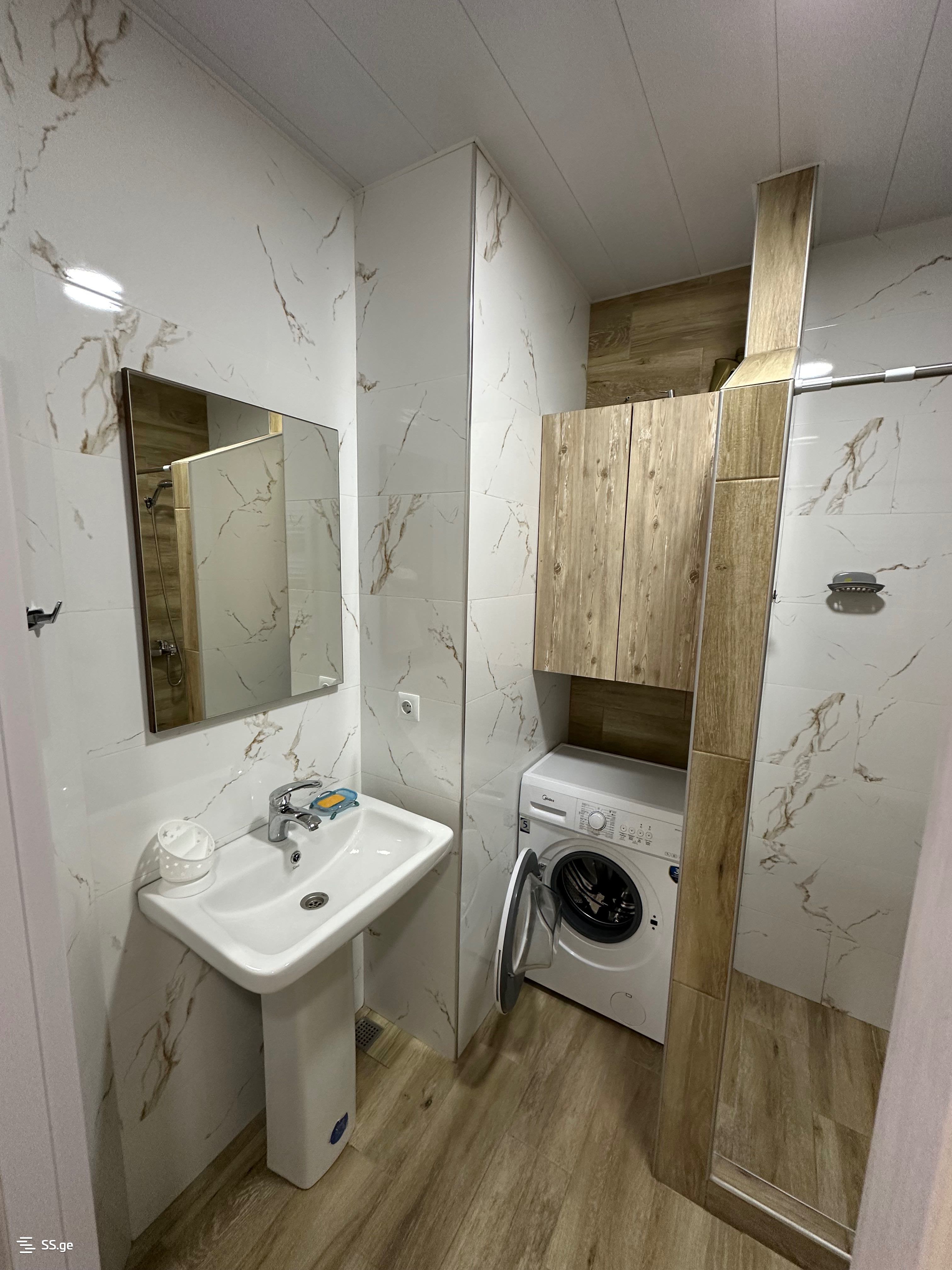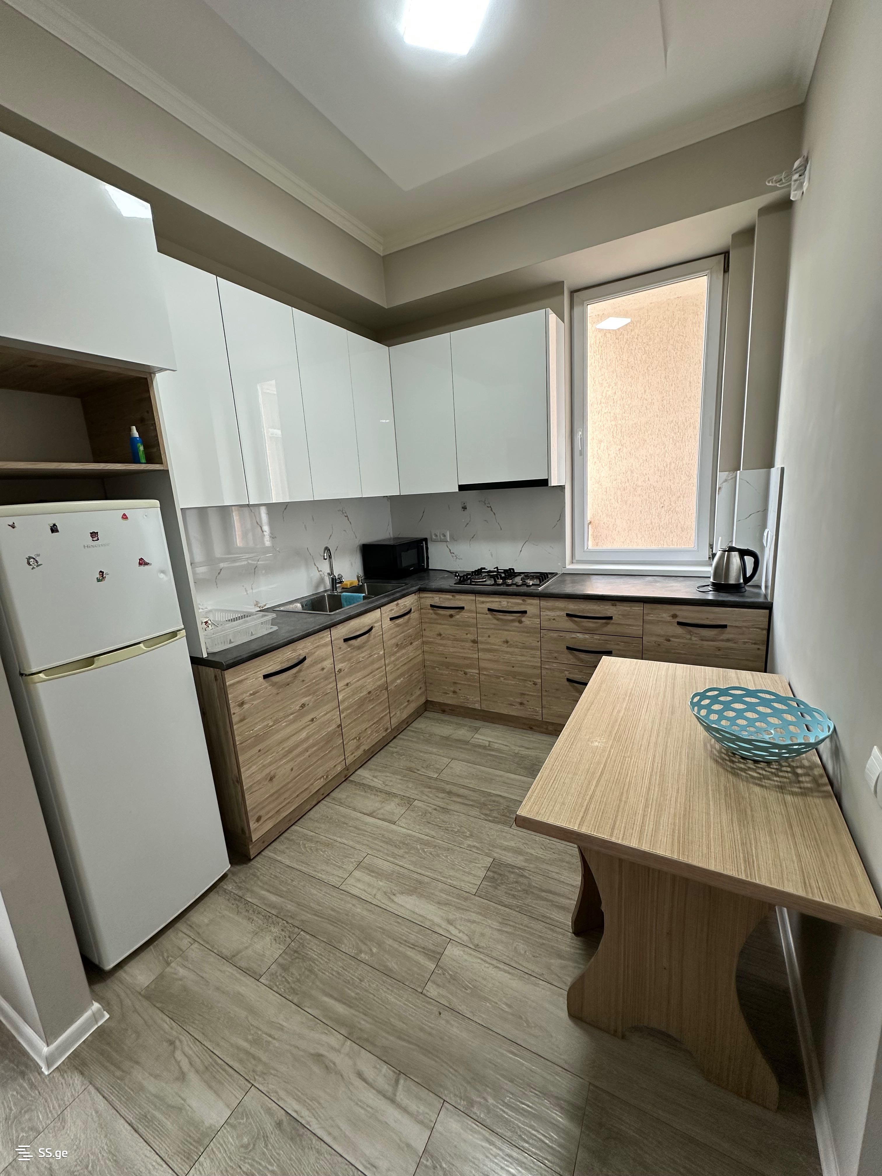 A 3-room apartment is for rent in Gldani, near the metro. In a newly built building. With 2 bright bedrooms. With appliances, furniture, central heating, air conditioning.