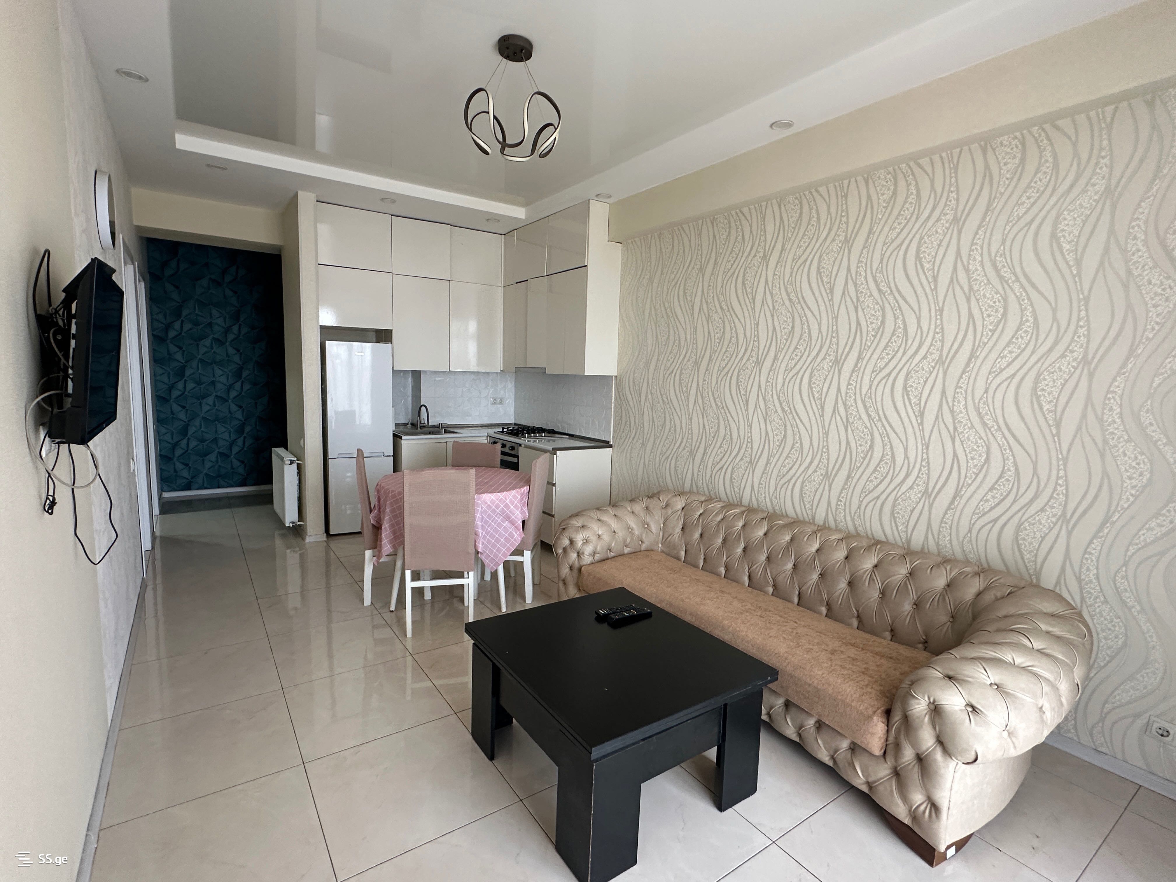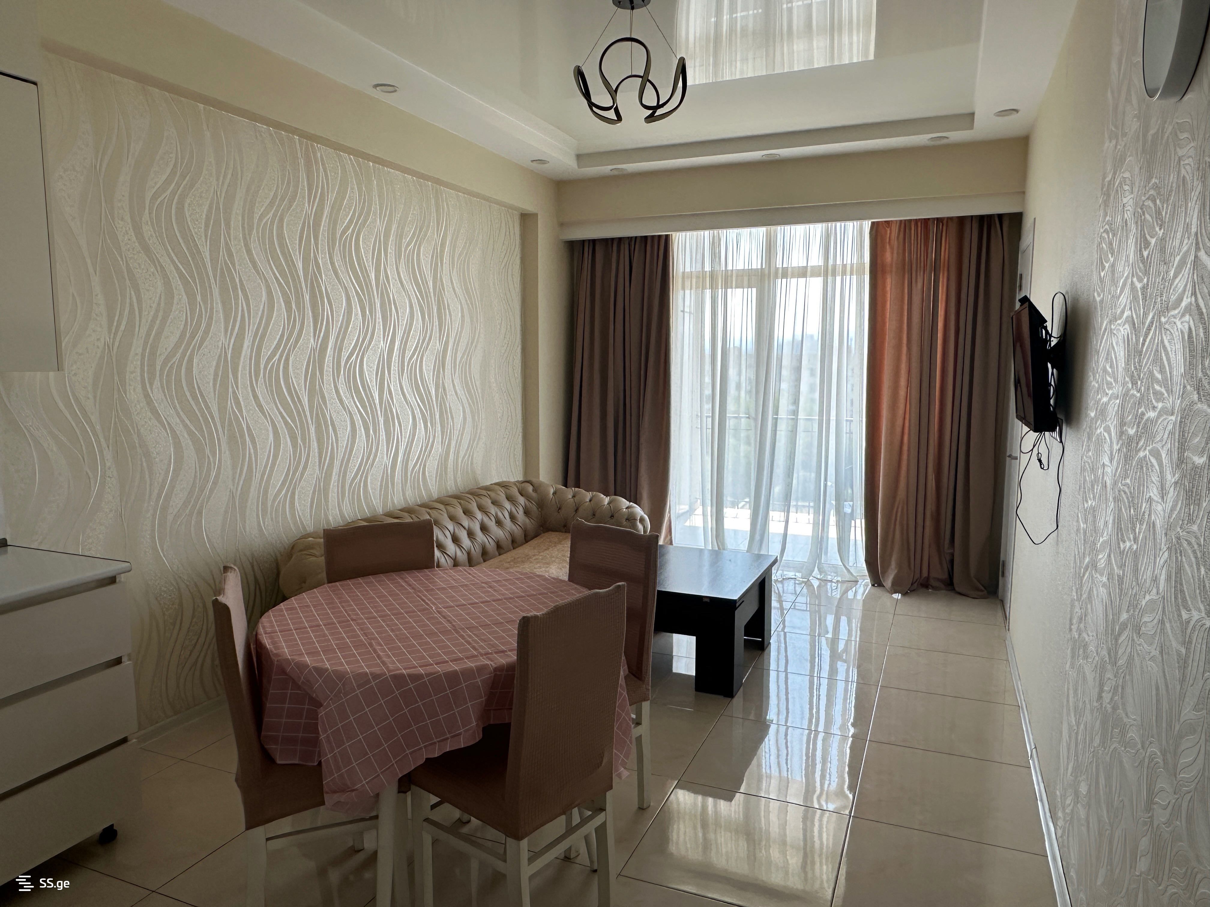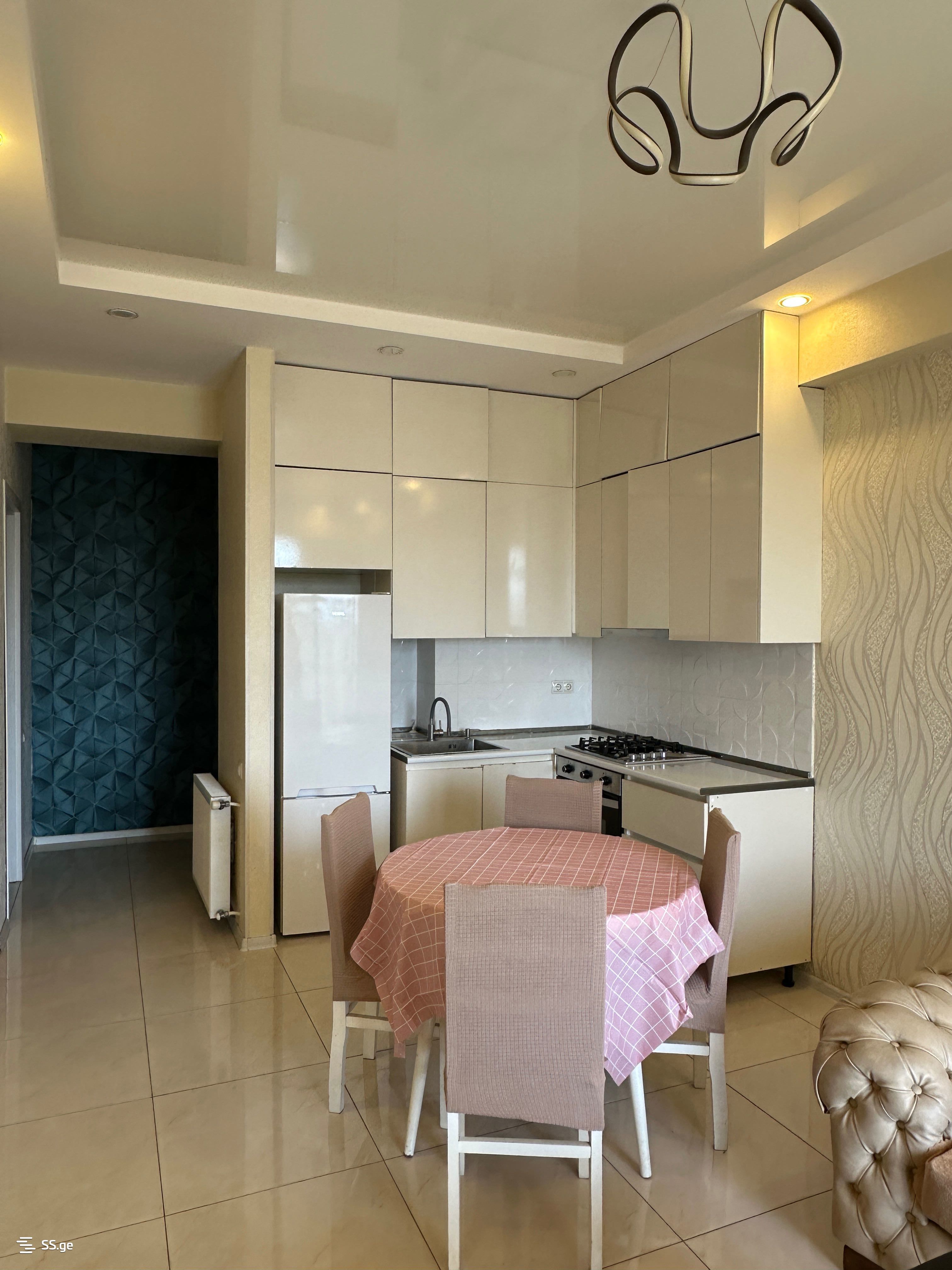 A well-furnished three-room apartment is for rent, Gldani 5th district, a quiet and peaceful area. A school-kindergarten, a park, and all necessary amenities are nearby. The 4th stop from the metro, behind the Gldani swimming pool. I am the owner.