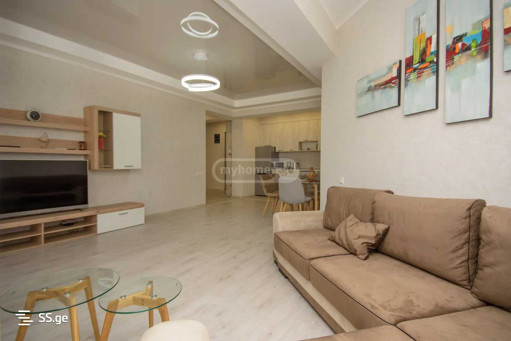 The apartment is furnished with all necessary furniture and items. There is a dishwasher in the kitchen. An oven.