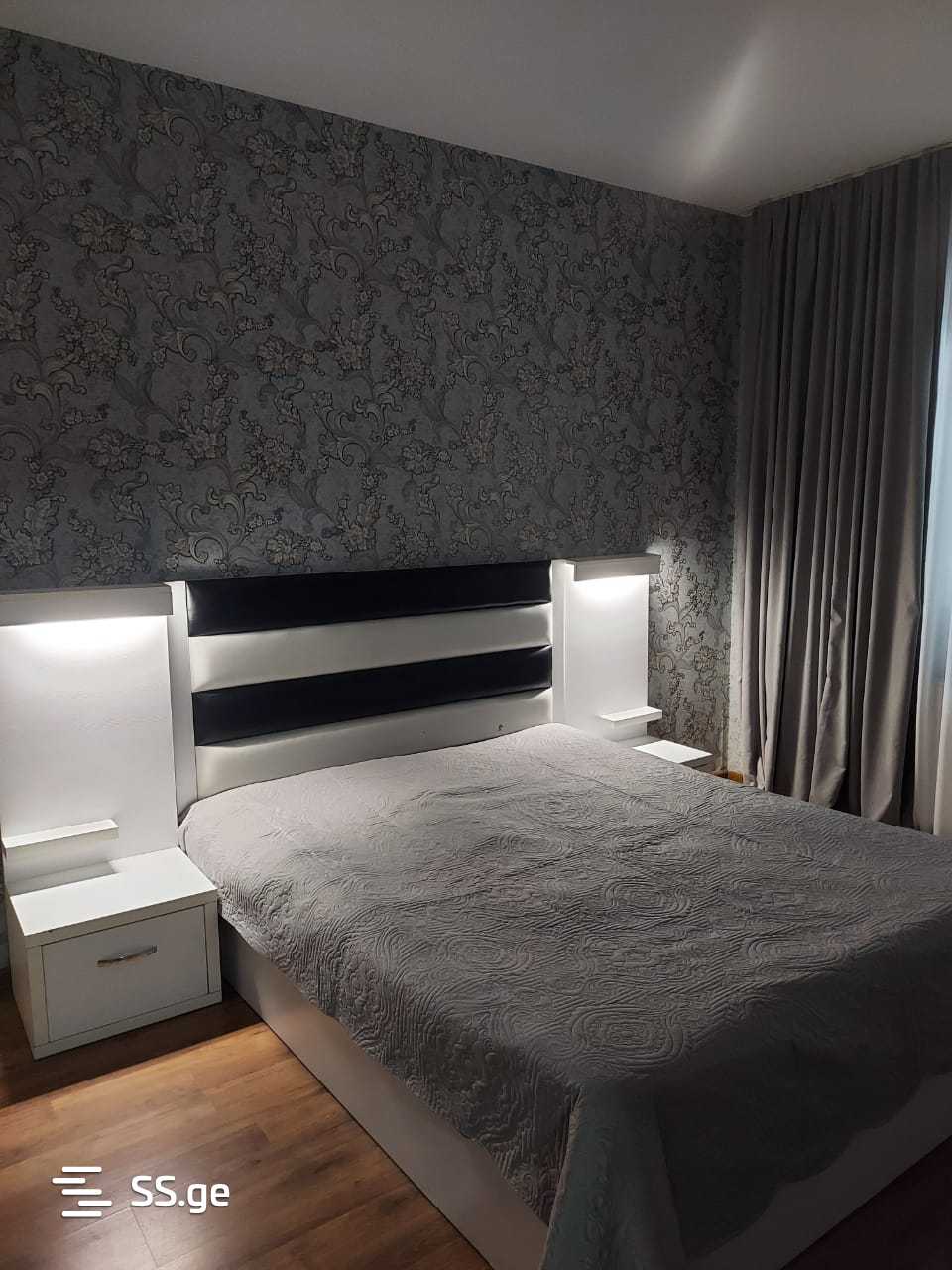 For rent in Isani-Didube a 3-room apartment with 2 bedrooms, 2 balconies 80 sq.m, central heating, furnished and equipped 17/13 floor, 1200 GEL.