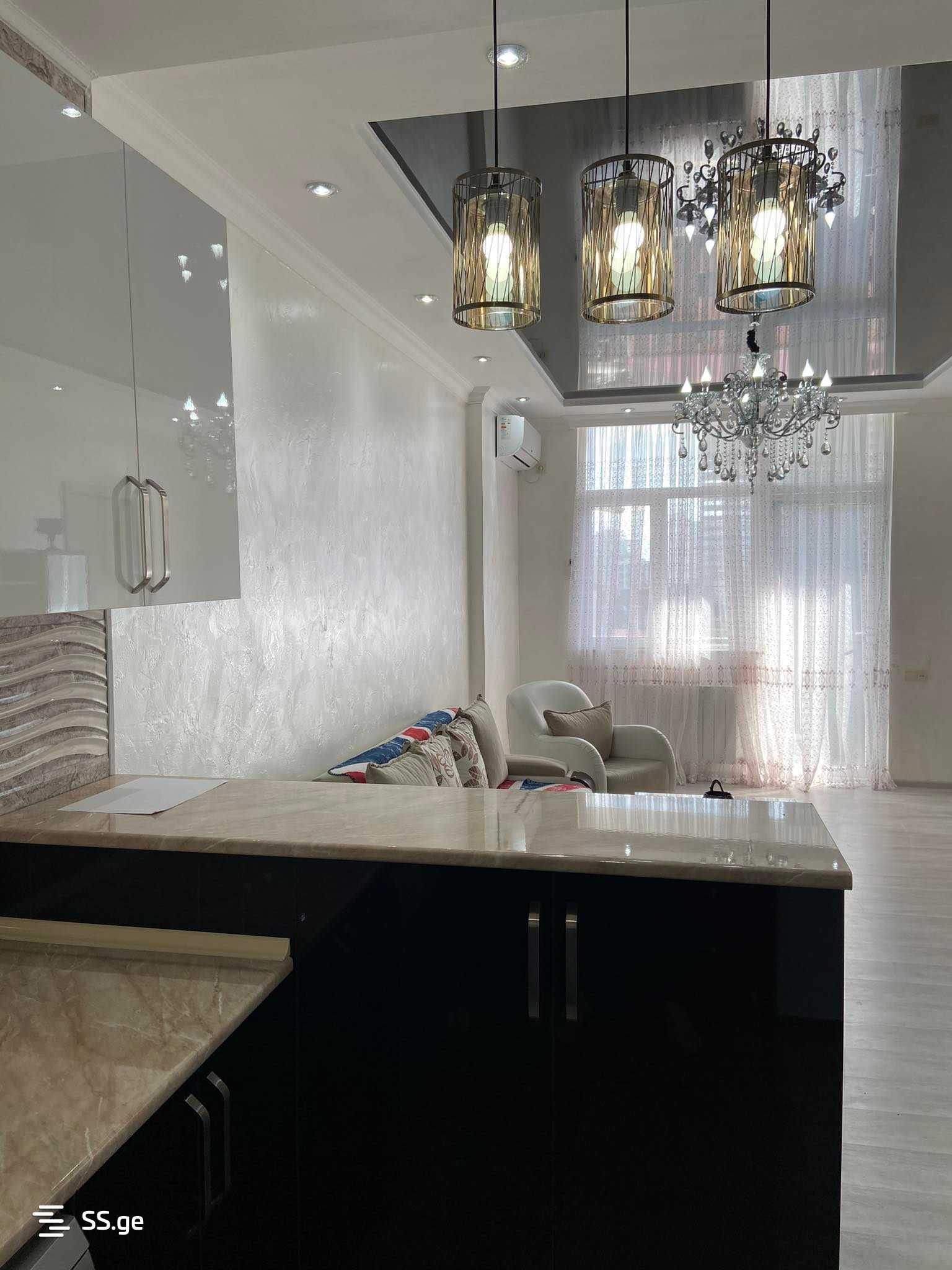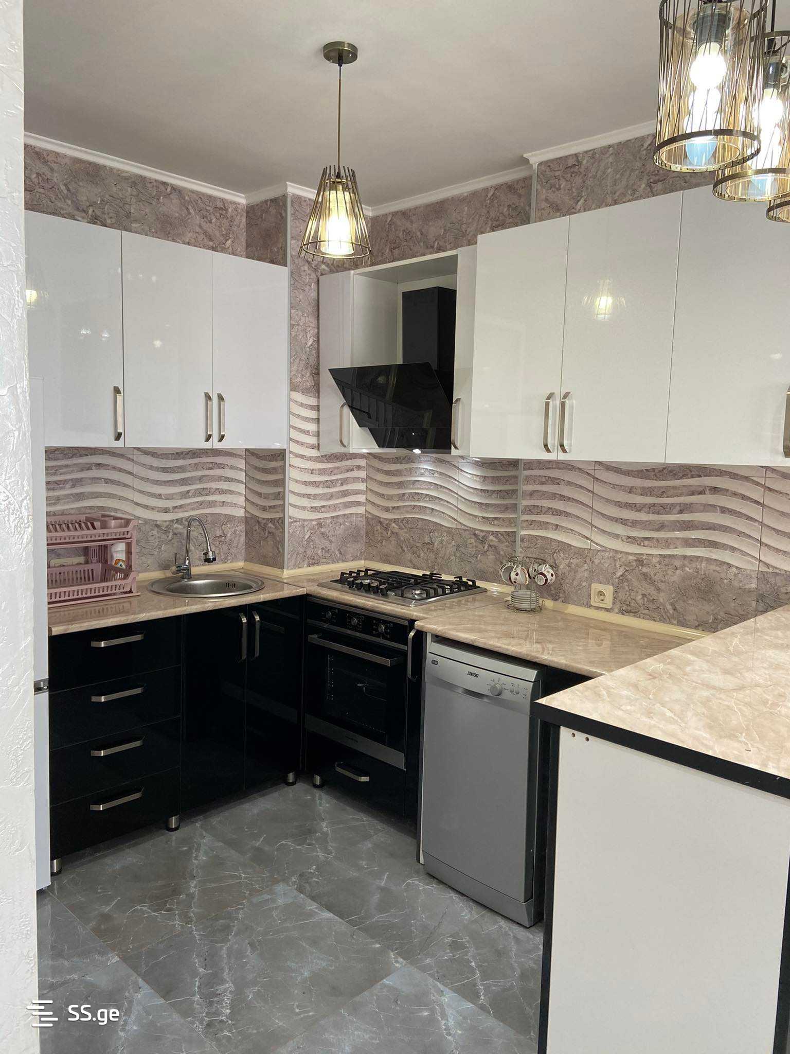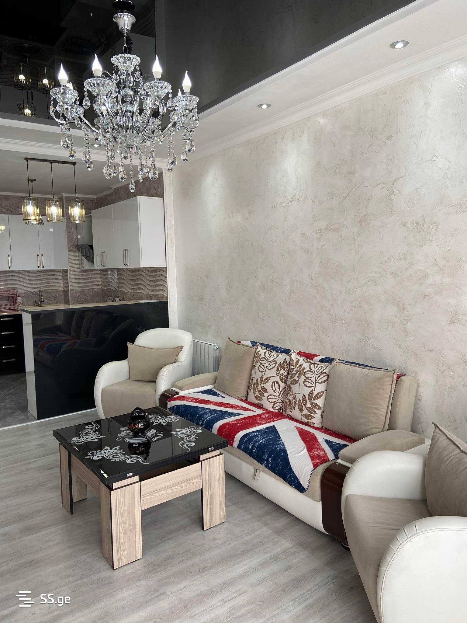 For rent in Batumi, a 61 sq.m newly built apartment on the 6th floor, three rooms with two bedrooms, renovated with furniture, appliances, central heating. Price: 500 dollars.