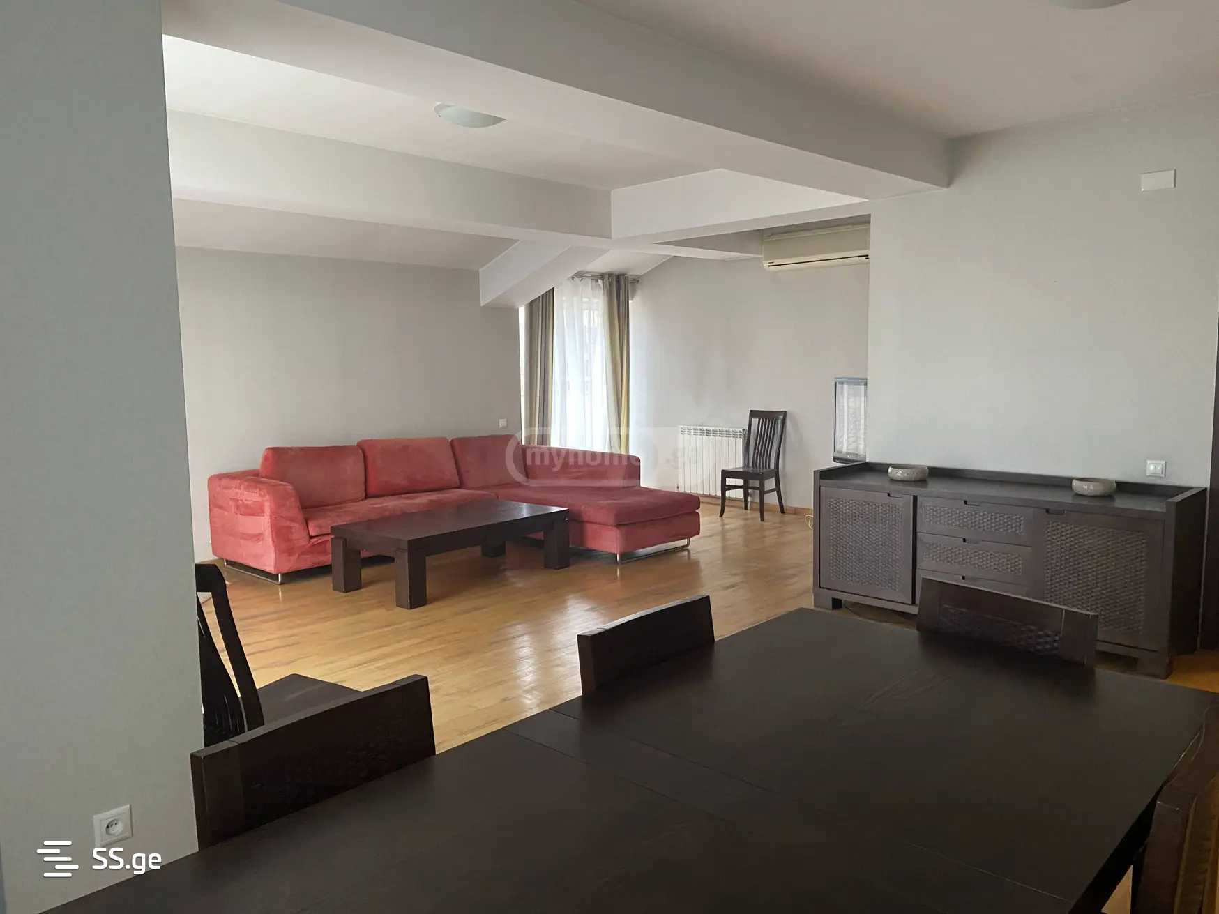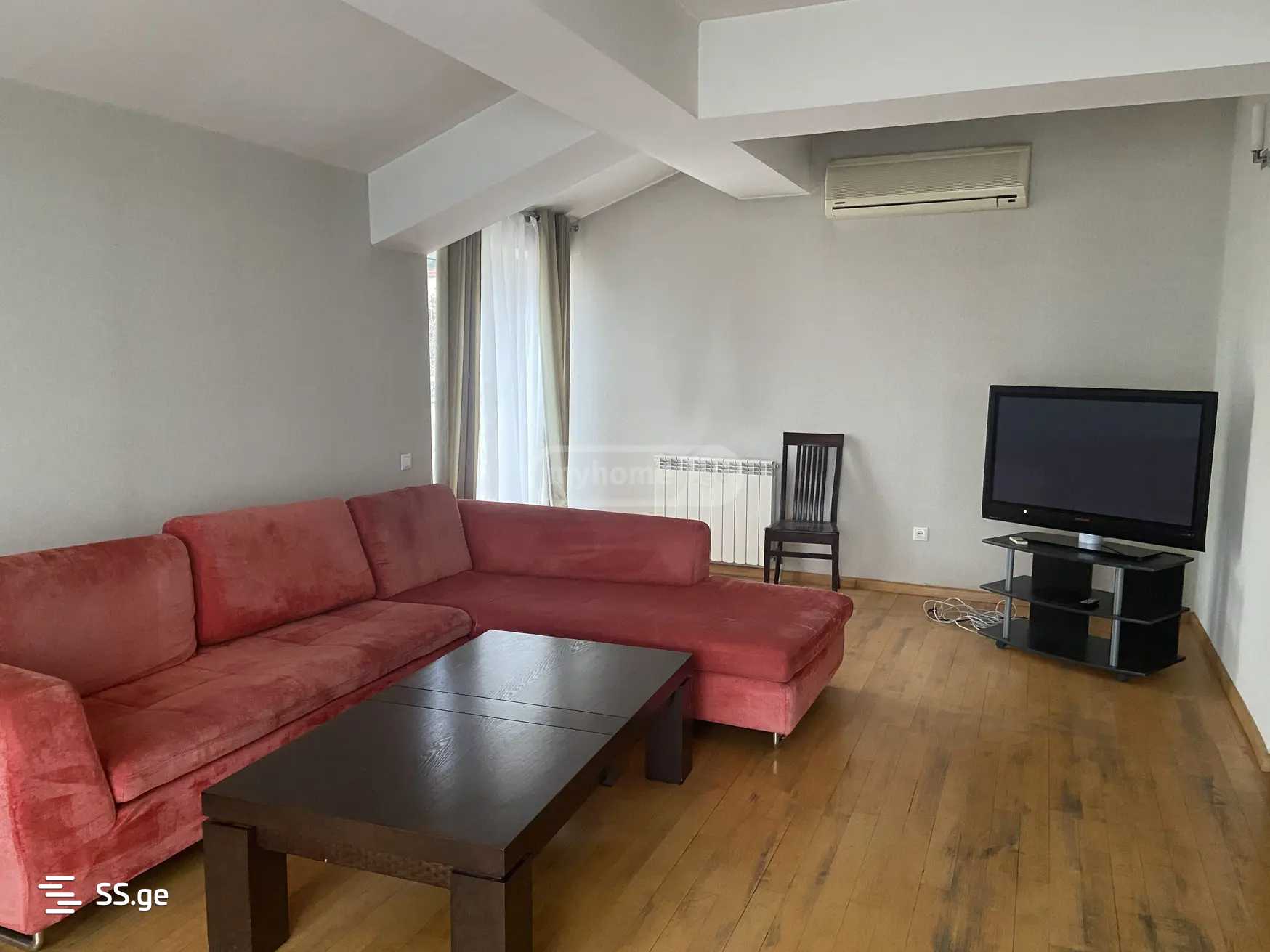 Urgent!!!! A 115 sq. m apartment is for rent, with a 56 sq. m terrace and balcony. The apartment is renovated and completely furnished, with two bedrooms, one of which has a wardrobe, one bathroom, a kitchen, and a large living room. You pay the first and last month's rent in advance.