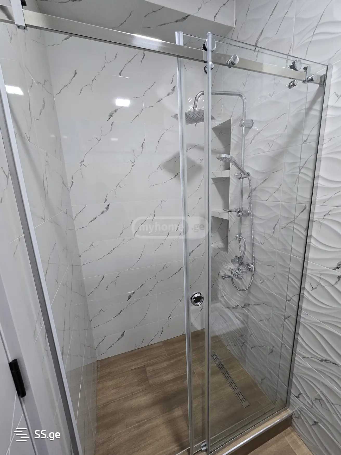 An uninhabited, three-room (two-bedroom) apartment is available for rent in a newly built building in front of City Mall Gldani. The apartment consists of two isolated bedrooms and a studio that combines the kitchen and living room. The apartment also has a balcony. It is equipped with Italian central heating that runs on natural gas. The apartment includes a washing machine, electric oven, gas stove, extractor hood, dishwasher, TV, and air conditioner. The appliances and furniture in the apartment are brand new. The apartment is located in front of Gldani Mall, a 5-minute drive from the metro station 'Akhmeteli Theatre'.