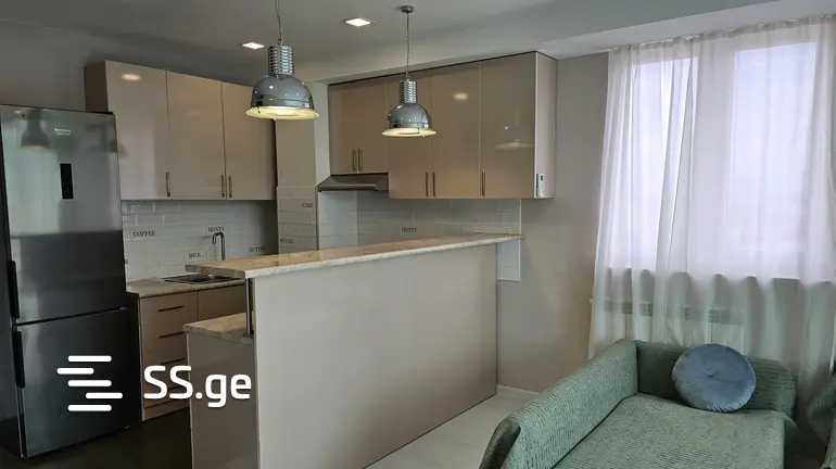 For rent in Saburtalo, a well-furnished, bright, and cozy apartment, fully furnished with all appliances. It has a 100 sq.m veranda that offers a view of the entire Tbilisi.