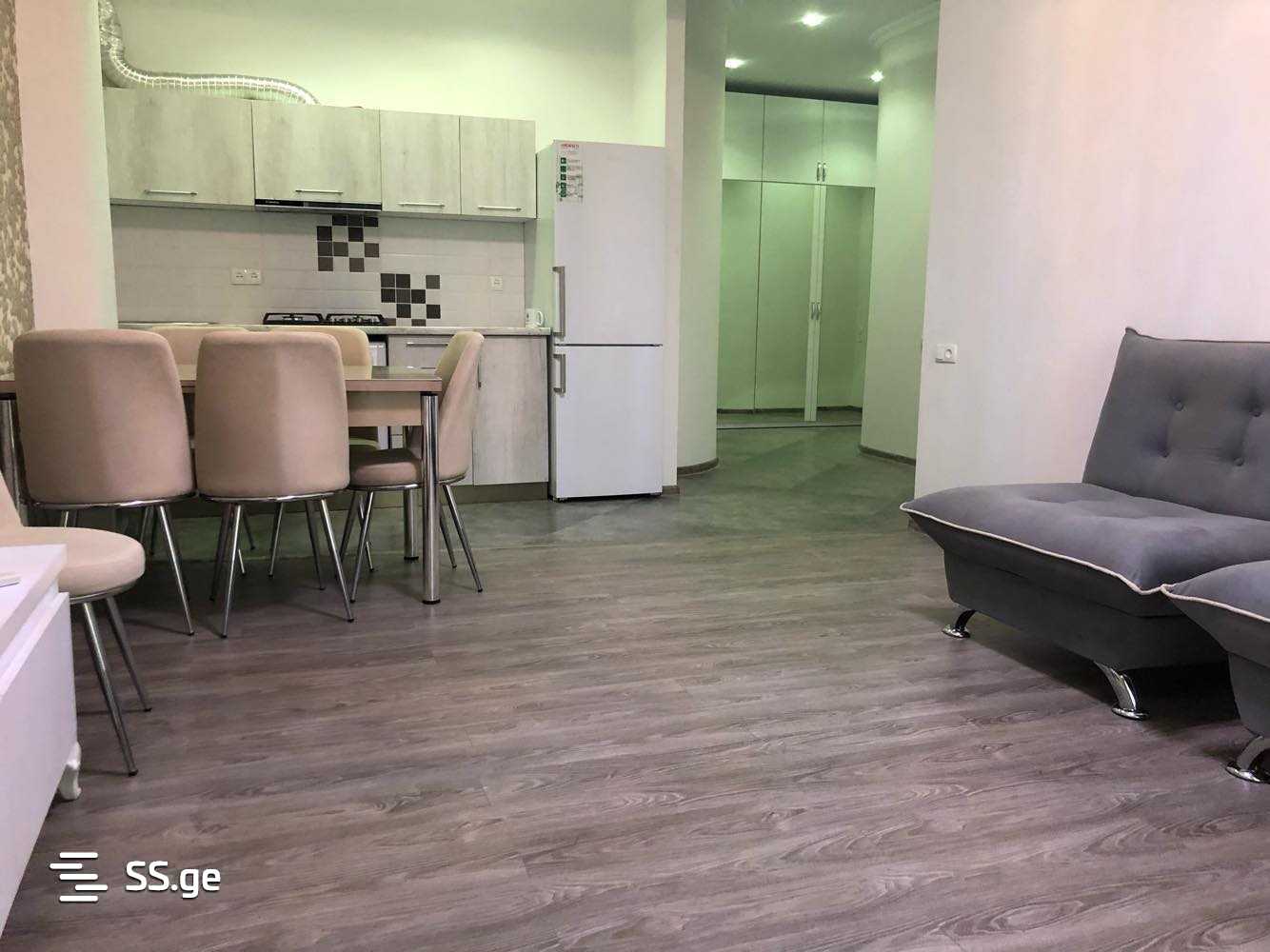 For rent! At the beginning of Kavtaradze 19a, near City Mall, in Azimut Apartment, an 85m2 house is for rent, 3 rooms, two isolated bedrooms, living room, all kinds of furniture and appliances, air conditioning, central heating, large balcony overlooking the yard. Newly built building, secured yard, with a barrier, video cameras, entrance chip and code, two months in advance