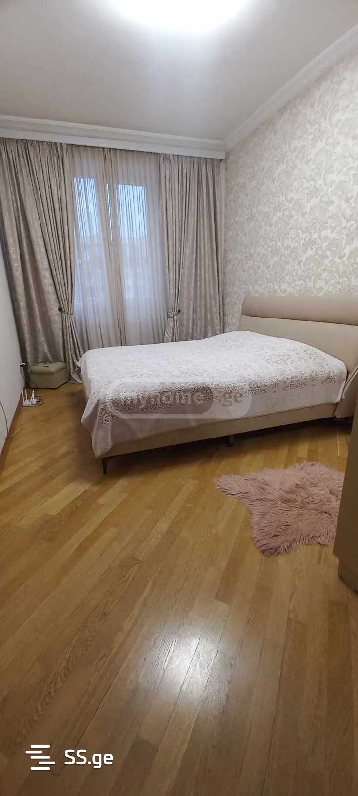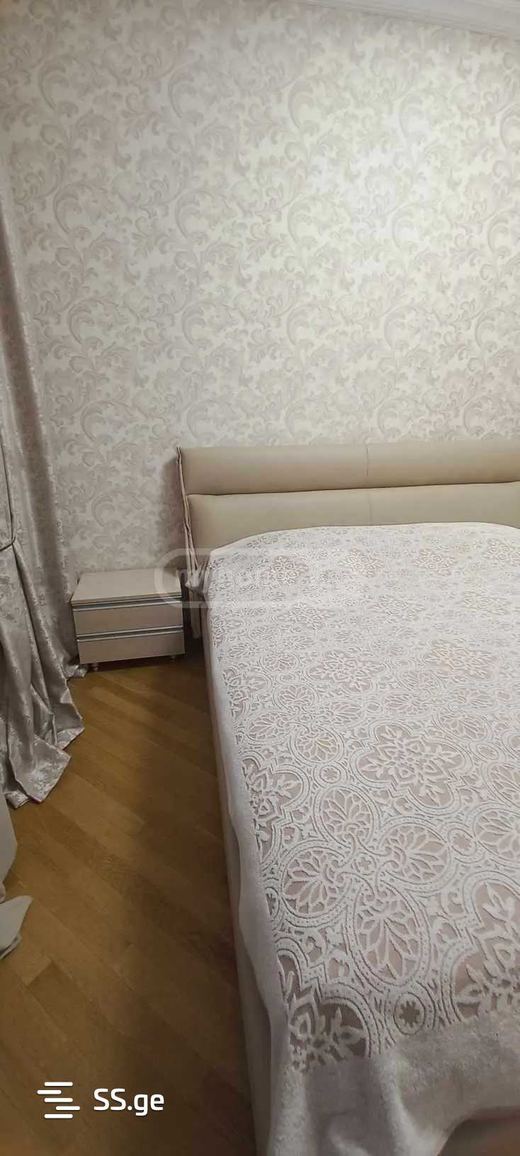 For rent, in a newly built building near City Mall, a 120 square meter 3-room apartment with 2 bathrooms, equipped with a Jacuzzi, newly renovated, furnished, with appliances, a closed yard, and parking.