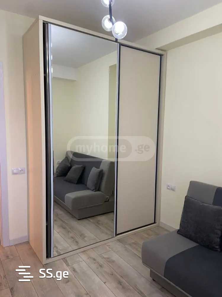 The apartment is in a newly built building at 11 {14} Spring Street, near Delisi Metro. Newly renovated, with new furniture and appliances. Two bedrooms with a kitchen and living room, one bathroom, a large balcony. The apartment has a new bed, bedding, utensils, and kitchen necessities, and most importantly, a great view of Tbilisi.