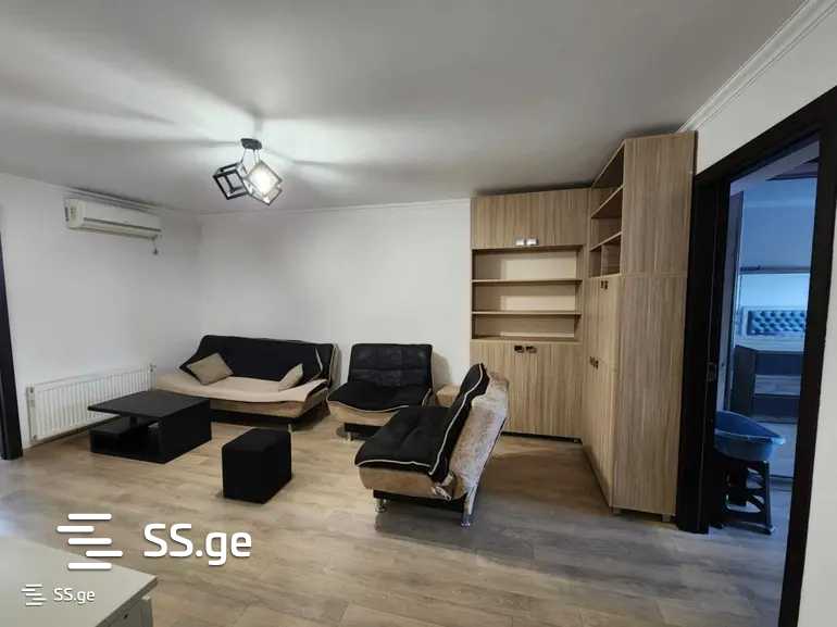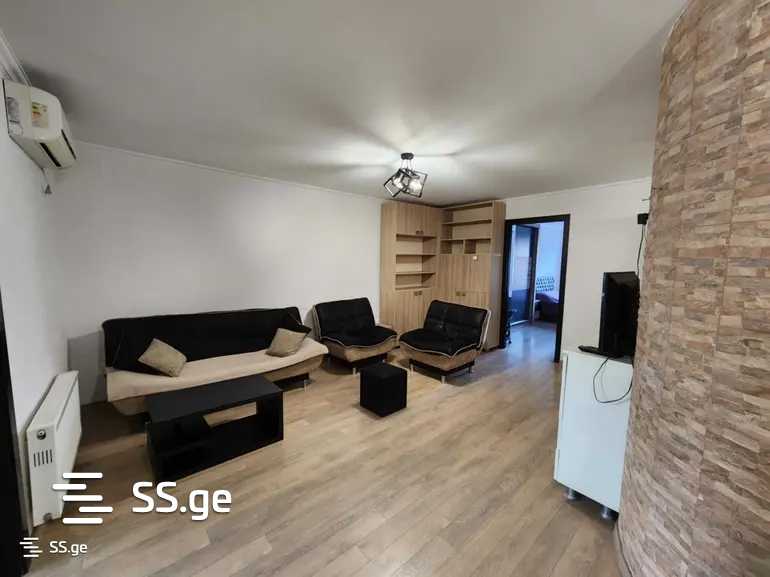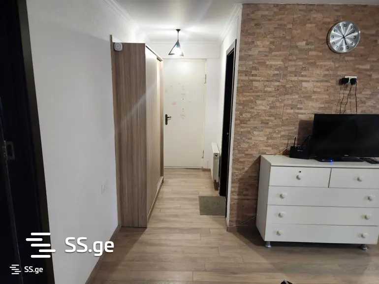 For rent, a 62 sq.m apartment in Vazha-Pshavela, 4th quarter, building 22, entrance 3, 4th floor, apartment 40. 200 meters from the university metro. The apartment has 2 isolated rooms: one full bedroom and 1 small study. A large living room and kitchen similar to a studio type. The house is equipped with all necessary inventory (furniture, refrigerator, washing machine, microwave, TV). Central heating system and air conditioning are installed, there are entrances from two sides in the yard (the street side is secured with a barrier), the entrance is opened with a chip.