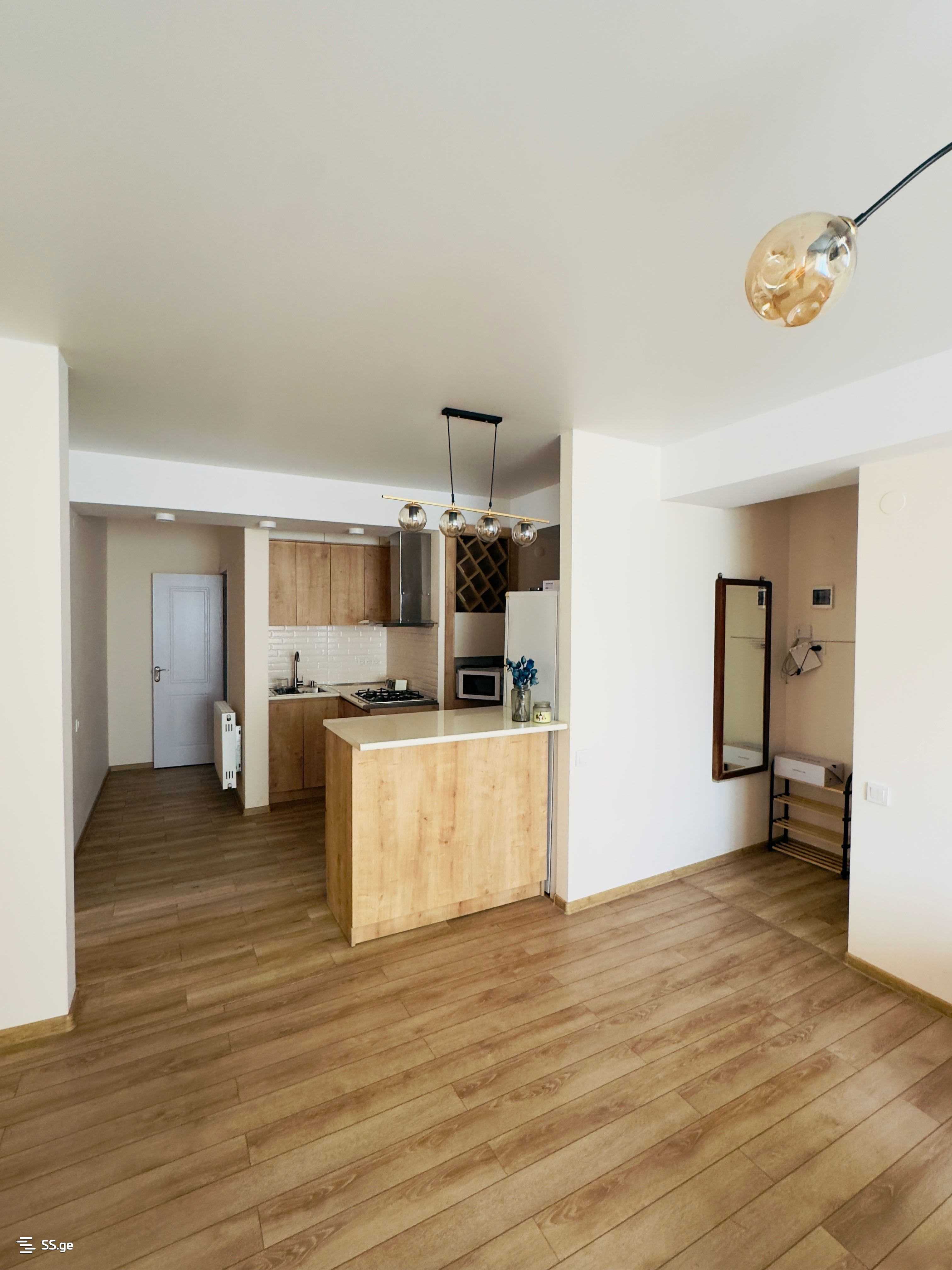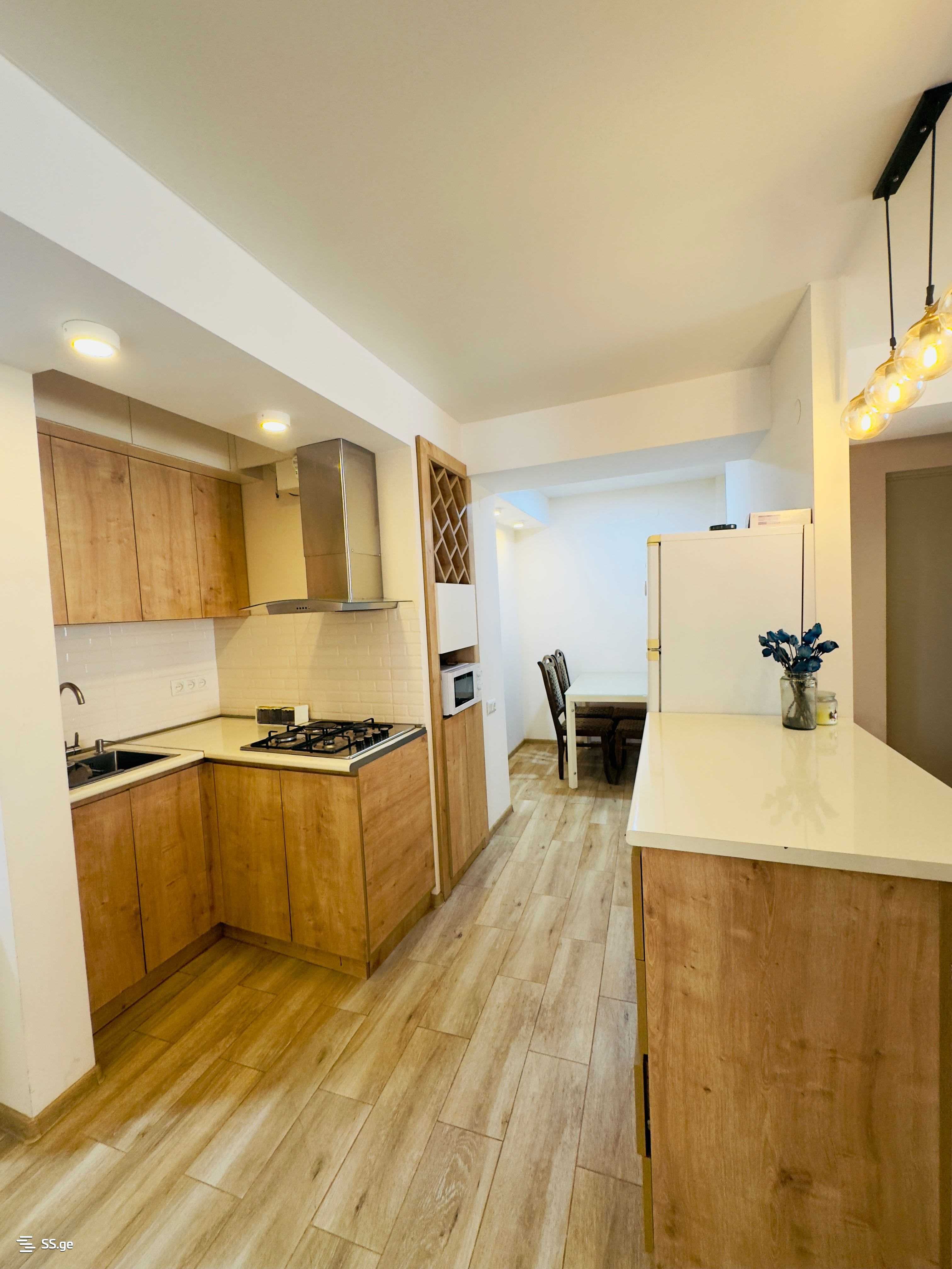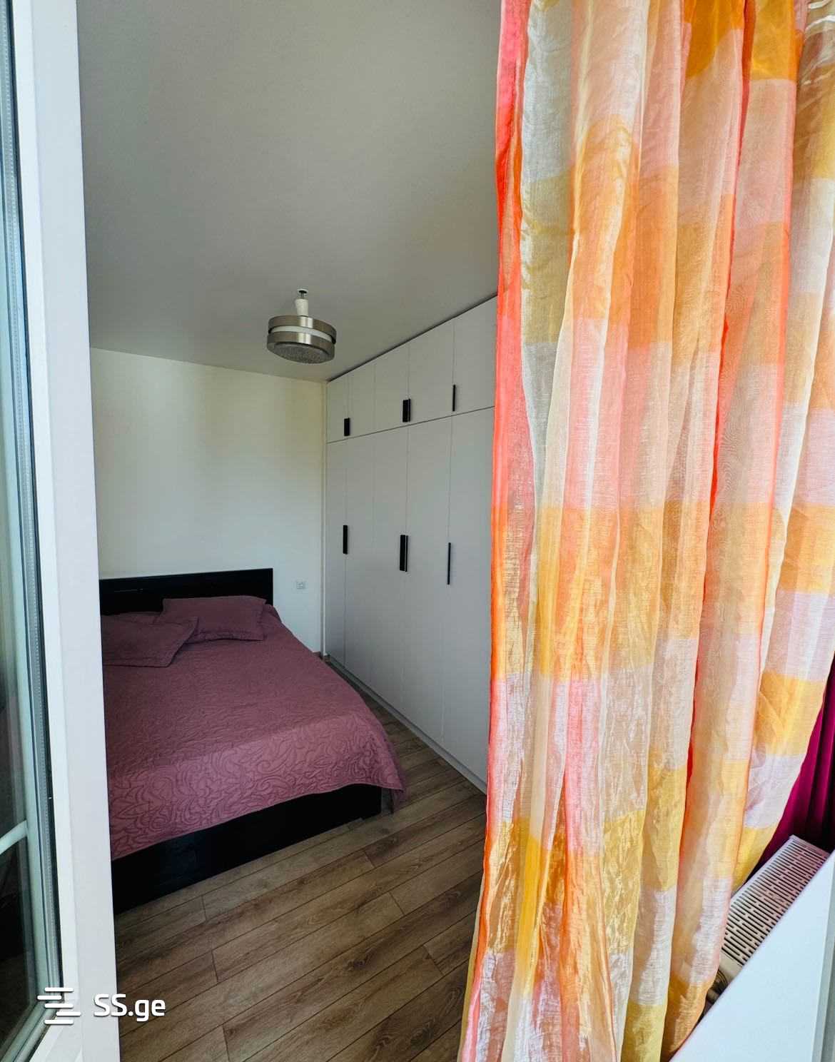 An apartment is for rent on Kavtaradze Street, opposite Megalab, close to City Mall. The bus stop is a few meters from the building, and the metro is a 5-minute walk away. The apartment is bright, quiet, and cozy. The yard has free parking spaces and is secured with a barrier. Payment for the first and last month is required in advance.