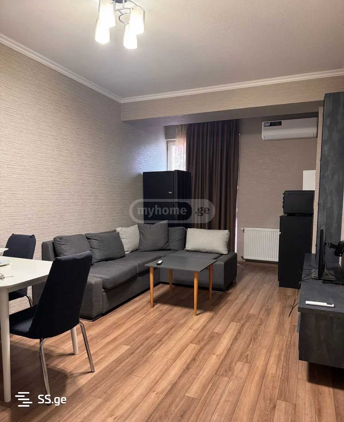 Apartment for rent, behind Kavaradze Carrefour. The apartment is well-furnished with necessary household items.