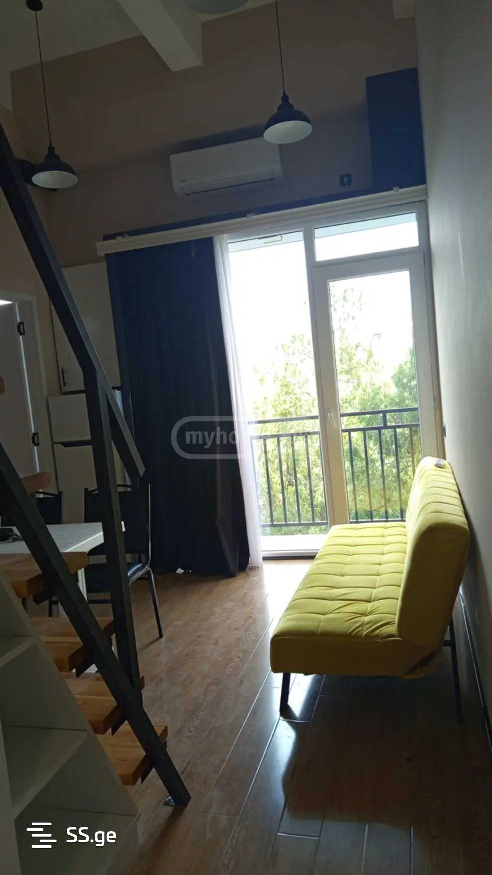A well-furnished, bright and cozy duplex-type apartment for rent. An extra bed can be placed upstairs in the attic. The apartment is equipped with all necessary furniture and appliances, central heating, and air conditioning. Two months advance payment required.