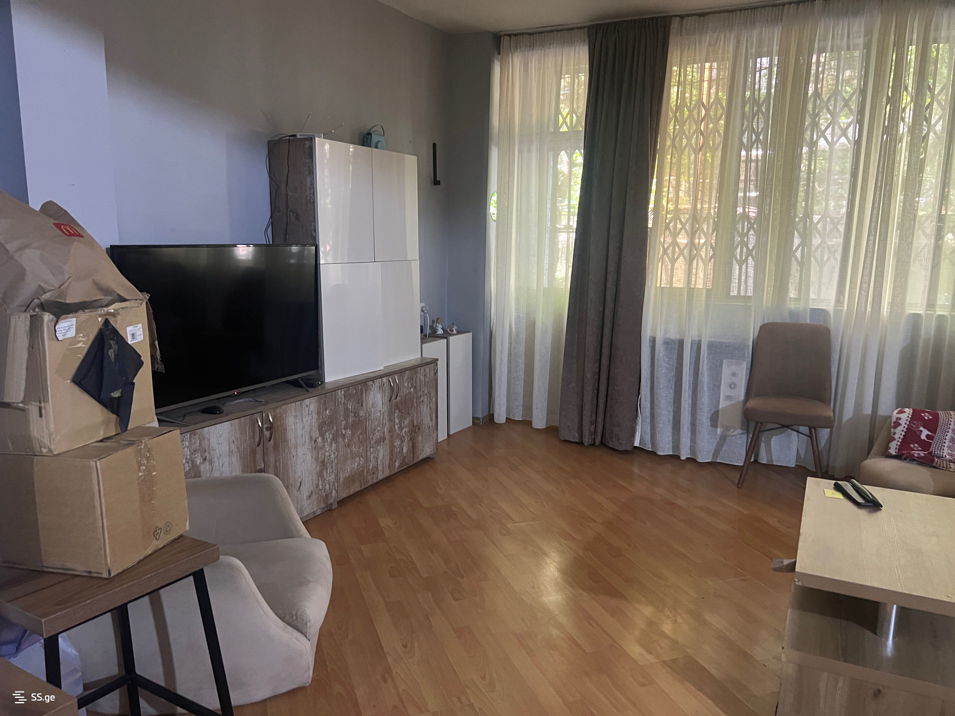 A flat is for rent on Dolidze Street, number 6, 1st floor, with non-standard distribution, facing a cozy, spacious living room with a balcony. The entrance is individual from the entrance hall and balcony. The flat is furnished with all kinds of furniture and appliances. If agents are interested, please call me only in the case of having a real client.