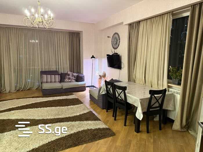 For rent is a 2-bedroom apartment near City Mall Saburtalo, in the residential complex 'Dream Town'. The apartment is equipped with high-quality furniture and appliances. It includes a parking space and all necessary items. It has a view of the inner courtyard and City Mall. If a private parking space is taken, an additional $50 will be added to the price.