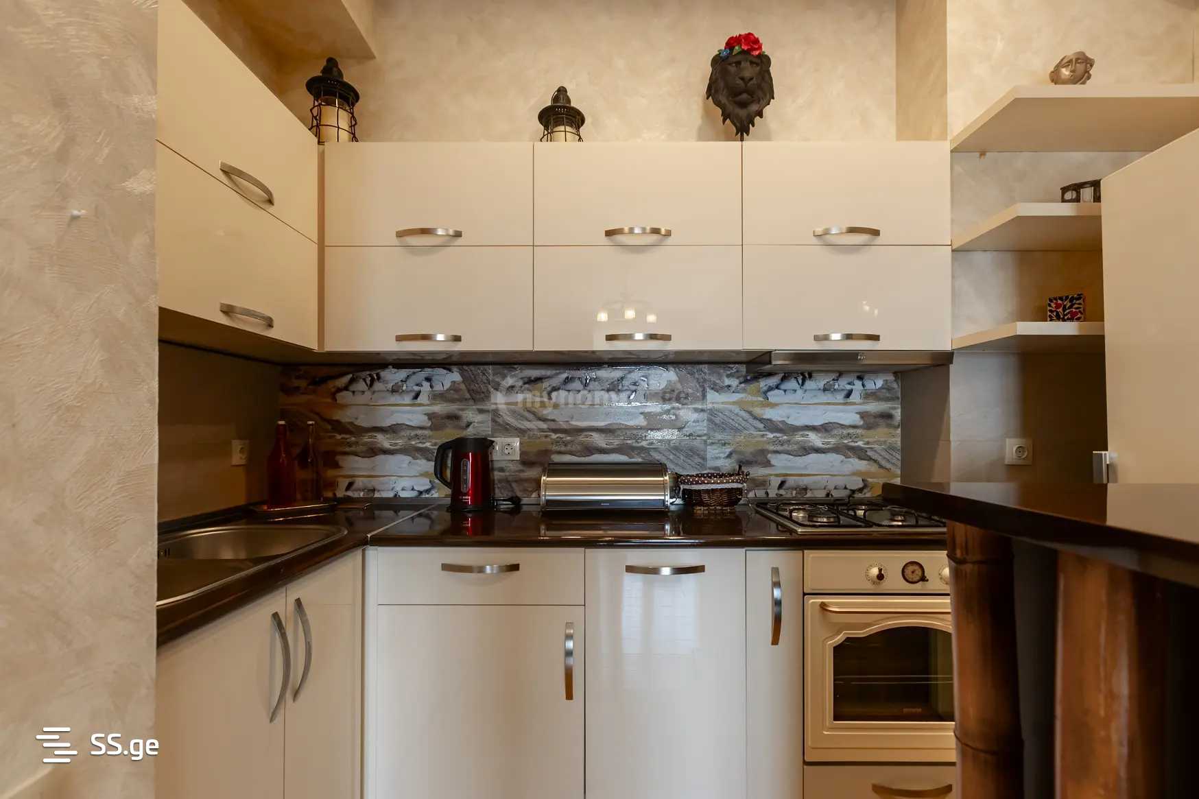 For rent: a 3-room apartment behind the Sports Palace, on Merab Aleksidze Street, in a prestigious building, with a perfect view, fully furnished and equipped (Bosch and Teka brands).